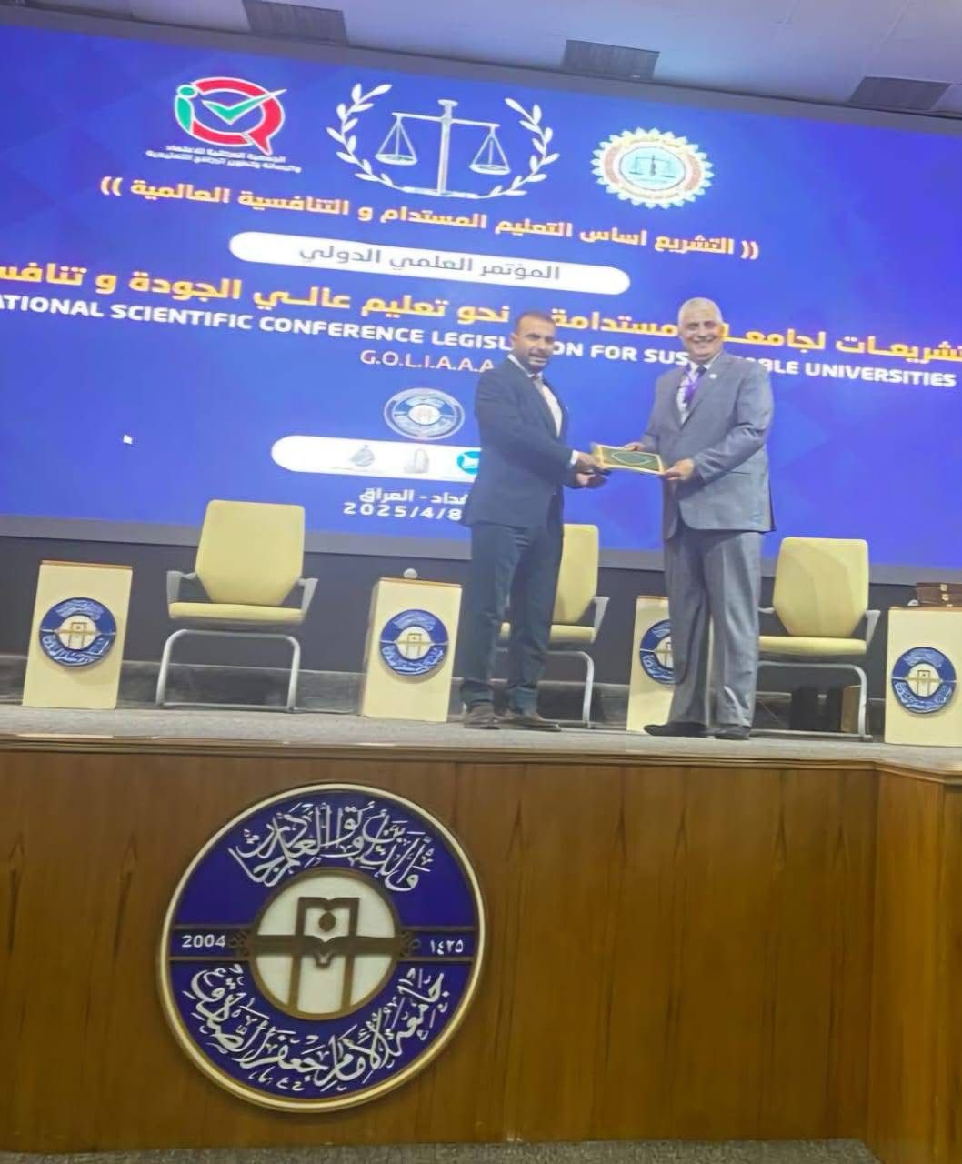 شاركت جامعة عجلون الوطنية في أعمال المؤتمر العلمي الدولي الموسوم “تشريعات لجامعات مستدامة نحو تعليم عالي الجودة وتنافسية عالمية”، والذي انعقد تحت شعار “التشريع أساس التعليم المستدام والتنافسية العالمية”، بتنظيم من كلية القانون في الجامعة المستنصرية، وبالتعاون مع الجمعية العراقية للاعتماد والرصانة وتطوير البرامج التعليمية، وبرعاية كريمة من جامعة الإمام جعفر الصادق، وذلك في العاصمة العراقية بغداد.