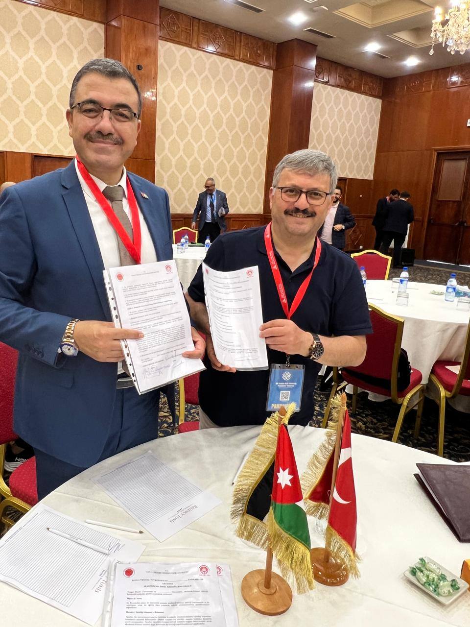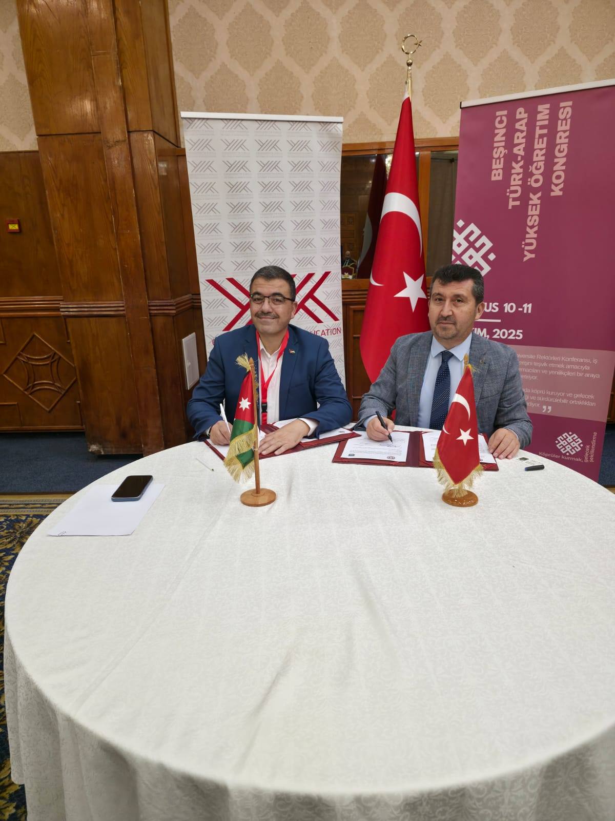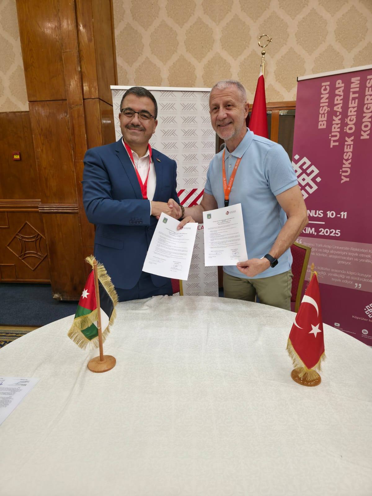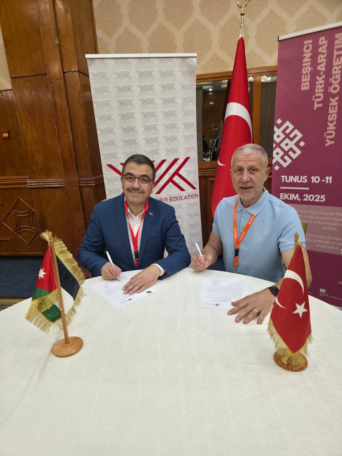 في إطار تعزيز العلاقات الأكاديمية وتطوير التعاون الدولي في مجالات التعليم العالي والبحث العلمي، وقّع رئيس جامعة عجلون الوطنية، ومدير مركز الذكاء الاصطناعي والتحول الرقمي التابع لاتحاد الجامعات العربية، الأستاذ الدكتور فراس الهناندة ، عددًا من مذكرات التفاهم مع جامعات تركية وتونسية، وذلك على هامش المؤتمر الخامس لرؤساء الجامعات العربية والتركية 2025، الذي استضافته جامعة تونس المنار ، والذي نظّمه اتحاد الجامعات العربية بمشاركة نخبة من رؤساء الجامعات والخبراء من مختلف الدول.
