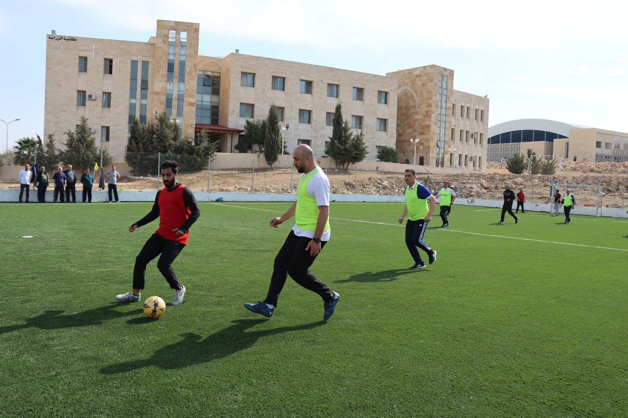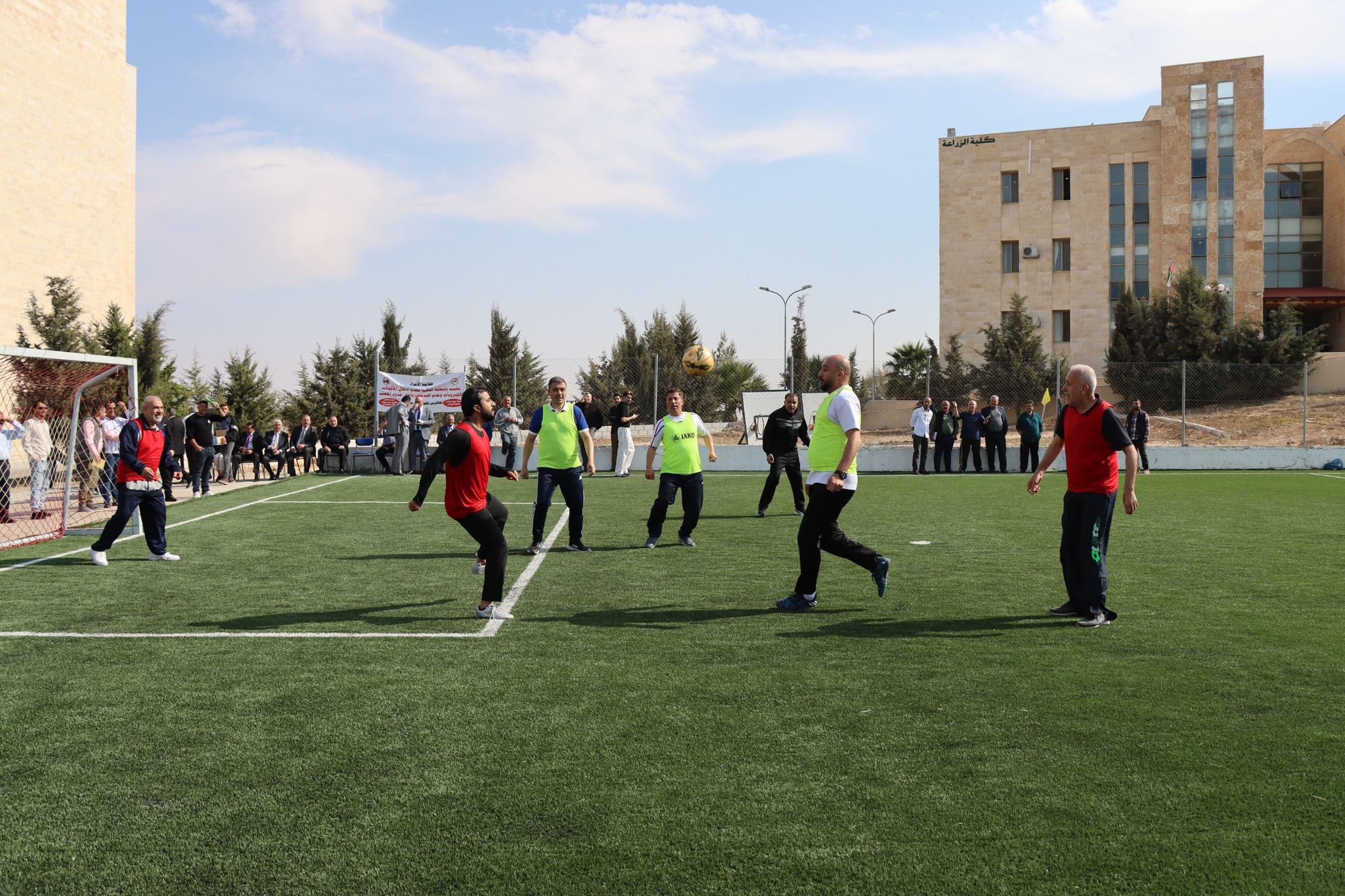 نظّمت عمادة شؤون الطلبة في جامعة عجلون الوطنية مباراةً ودّية في أجواء يسودها الحماس والروح الرياضية، جمعت بين أعضاء الهيئتين التدريسية والإدارية في الجامعة، بمشاركة رئيس الجامعة الأستاذ الدكتور فراس الهناندة، وعددٍ من العمداء وأعضاء الهيئتين التدريسية والإدارية من مختلف الكليات والدوائر.