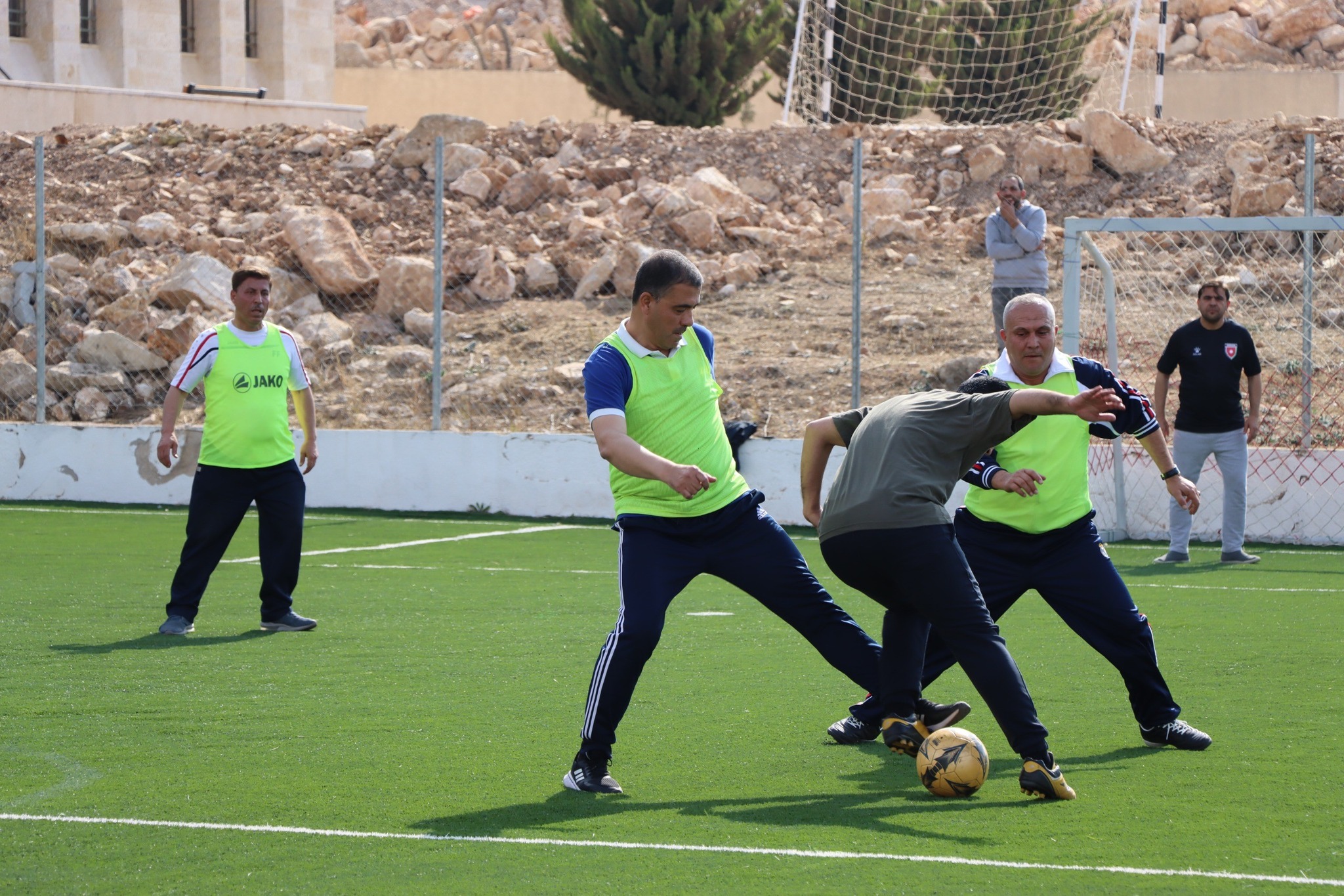 نظّمت عمادة شؤون الطلبة في جامعة عجلون الوطنية مباراةً ودّية في أجواء يسودها الحماس والروح الرياضية، جمعت بين أعضاء الهيئتين التدريسية والإدارية في الجامعة، بمشاركة رئيس الجامعة الأستاذ الدكتور فراس الهناندة، وعددٍ من العمداء وأعضاء الهيئتين التدريسية والإدارية من مختلف الكليات والدوائر.