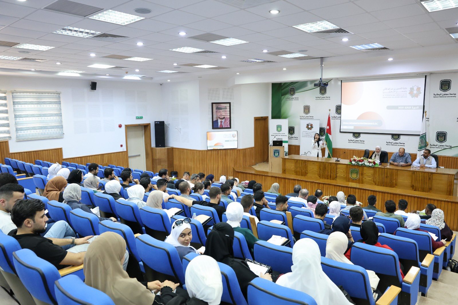 عقدت جامعة عجلون الوطنية ندوة تعريفية بجائزة الحسين بن عبد الله الثاني للعمل التطوعي، قدّمتها عضو الفريق اللوجستي والمحوري للجائزة في وزارة الشباب، الدكتورة ختام العبادي، بحضور عميدة شؤون الطلبة الدكتورة ريم الكناني، ومدير شباب محافظة عجلون الدكتور محمد جرادات، ورئيس قسم الشؤون الشبابية وضابط ارتباط الجائزة في المديرية مصطفى القضاة، ورئيسة قسم الإعلام والعلاقات العامة مريم عبود، ورئيس مركز شباب عنجرة طلال خطاطبة.