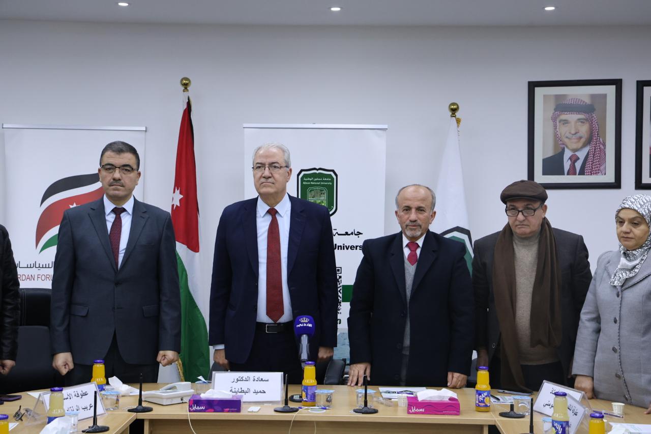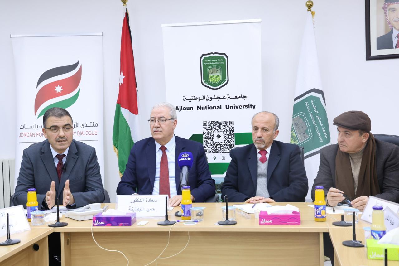 تحت رعاية معالي المهندس أنمار الخصاونة، نظم منتدى الأردن لحوار السياسات بالتعاون مع جامعة عجلون الوطنية، جلسة حوارية بعنوان “الحكومات البرلمانية واقع وتحدي”، بحضور النائب الدكتور عبدالحليم عنانبة، والنائب الدكتور مؤيد العلاونة، ورئيس مجلس المحافظة عطوفة عمر المومني، ومدير ثقافة عجلون سامر فريحات، ومدير أوقاف عجلون الدكتور صفوان القضاة، ورئيس بلدية الشفا زهر الدين العرود، وعدد من كبار الشخصيات والباحثين في الشأن السياسي والبرلماني.