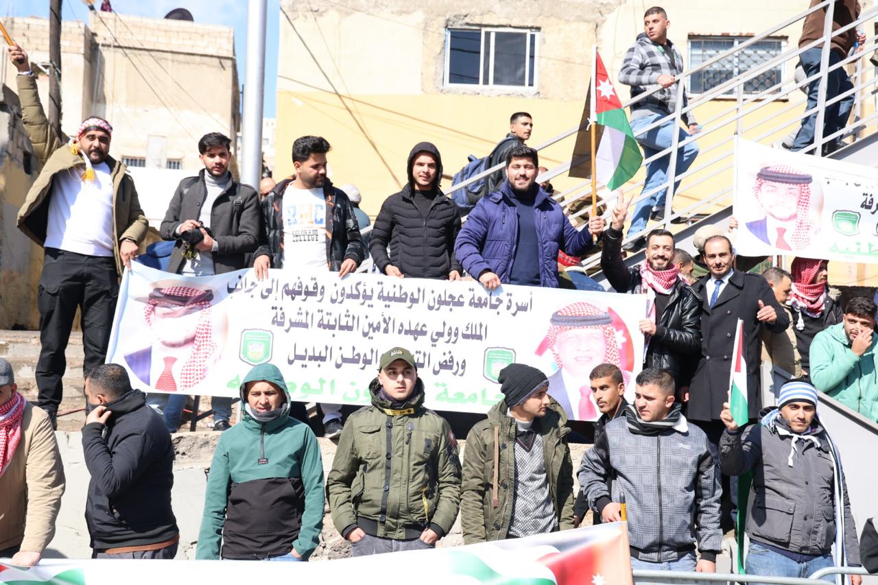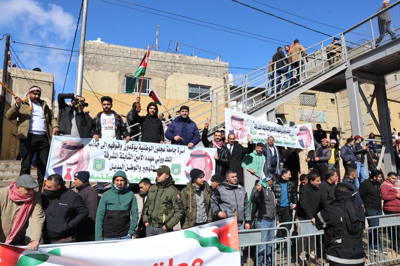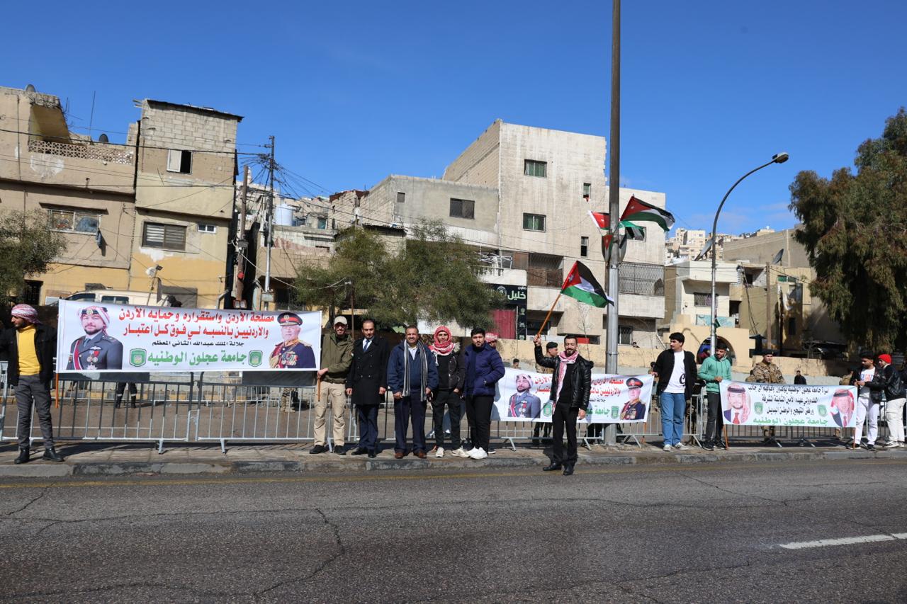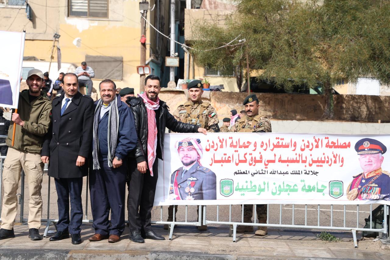 جامعة عجلون الوطنية تشارك في استقبال جلالة الملك عبدالله الثاني وولي العهد