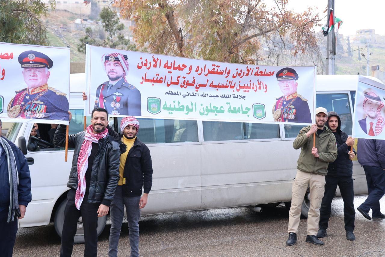 جامعة عجلون الوطنية تشارك في استقبال جلالة الملك عبدالله الثاني وولي العهد