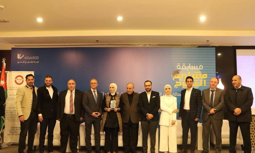 دائرة الاتصال المؤسسي والعلاقات الدولية- بحضور معالي وزير التعليم العالي والبحث العلمي الأستاذ الدكتور عزمي محافظة، وعطوفة رئيس جامعة عجلون الوطنية الأستاذ الدكتور فراس الهناندة، ونائب نقيب المهندسين المهندس فوزي المسعد، والمدير التنفيذي للنقل في أمانة عمّان الكبرى المهندس رياض الخرابشة، ورئيس المسابقة الدكتور محمد غيث، كرّمت نقابة المهندسين الأردنيين يوم امس السبت 12 نيسان 2025 فريق جامعة عجلون الوطنية الفائز في مسابقة مشاريع التخرج الفنية والصناعية ومشاريع المرور، التي أُقيمت بالتعاون مع أمانة عمّان الكبرى وغرفة صناعة عمّان، في فندق اللاند مارك بالعاصمة عمّان.