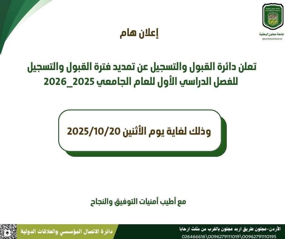 اعلان هام للطلبة /تمديد فترة القبول والتسجيل