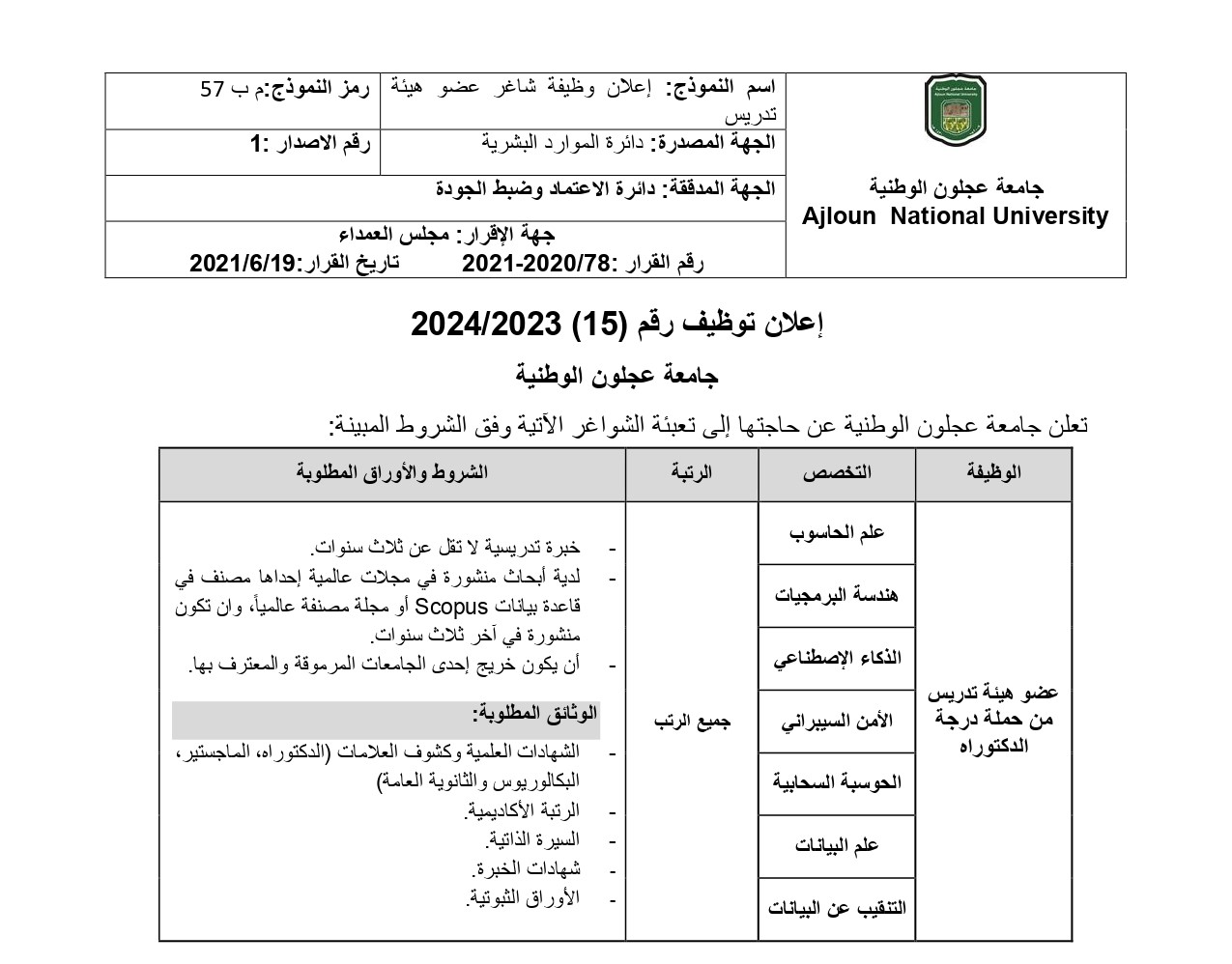 ** لن يتم قبول أي طلب في حالة عدم اكتمال الشروط والوثائق المطلوبة، وانتهاء فترة الإعلان.