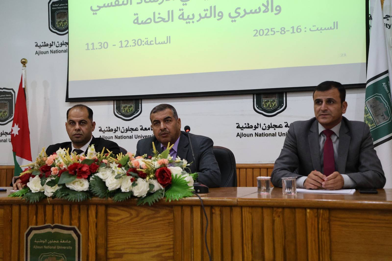 المحور الثاني – الإدارة التربوية: قدمه رئيس قسم الإرشاد النفسي والأسري والإدارة التربوية الدكتور خالد المومني بعنوان إدارة الذات والوقت للطالب الجامعي، مركزًا على أهمية التخطيط وتنظيم الوقت في تحسين التحصيل الأكاديمي وتنمية القدرات الشخصية للطلبة.