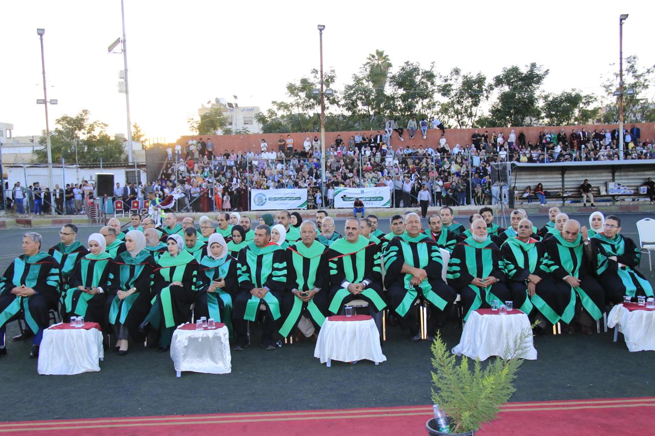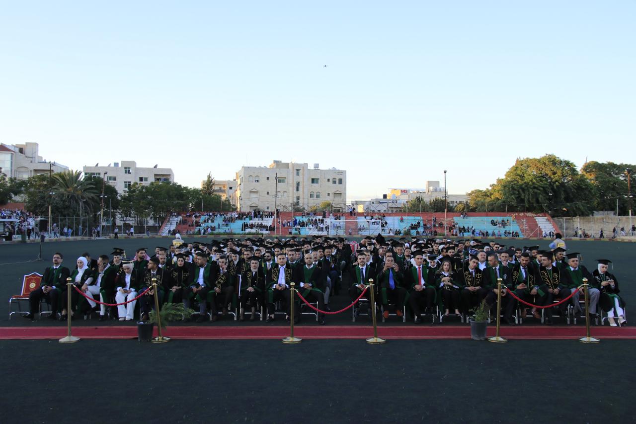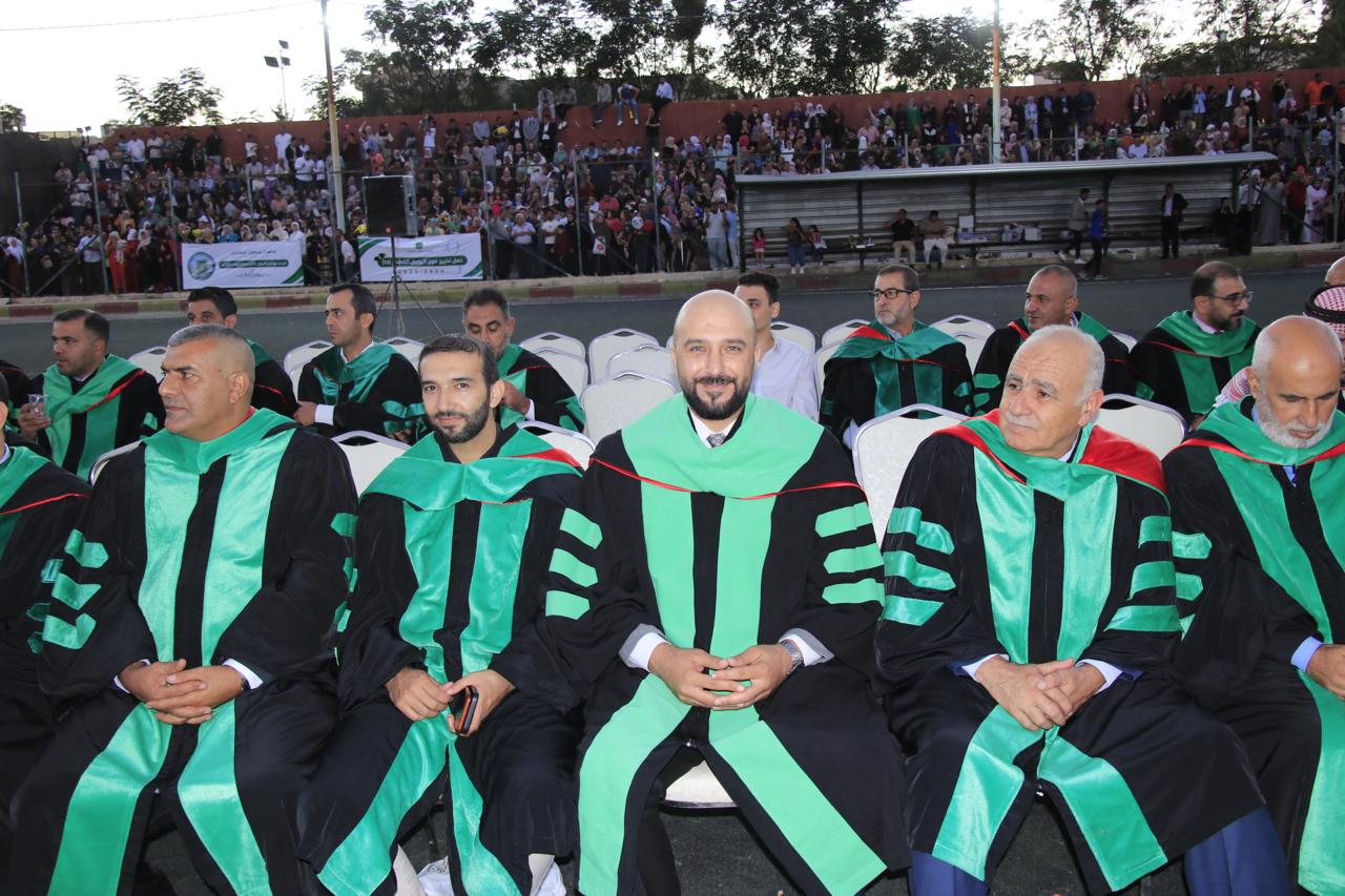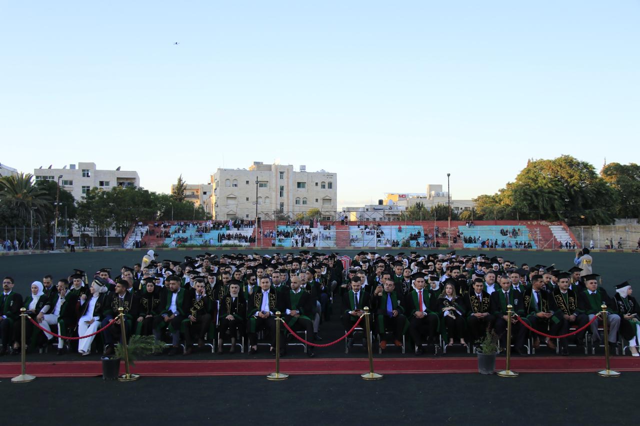 وفي نهاية حفل التخريج الذي أقيم في الملعب البلدي في اربد قام الدكتور الصمادي ورئيس الجامعة الهنانده بتسليم الطلبة شهادتهم بحضورعمداء كليات الجامعة واعضاء الهيئة التدريسية في الجامعة وأولياء أمور الطلبة.