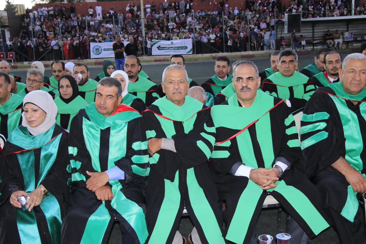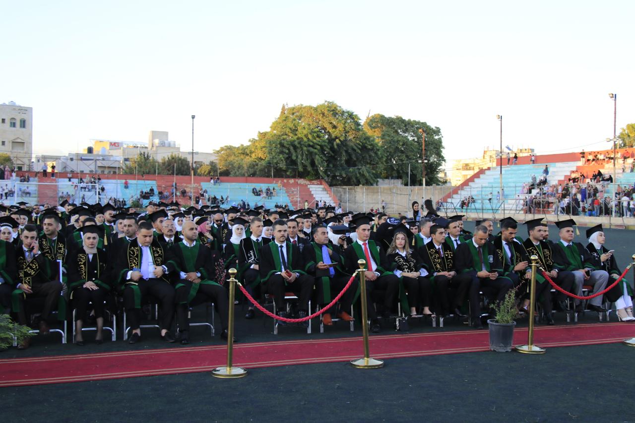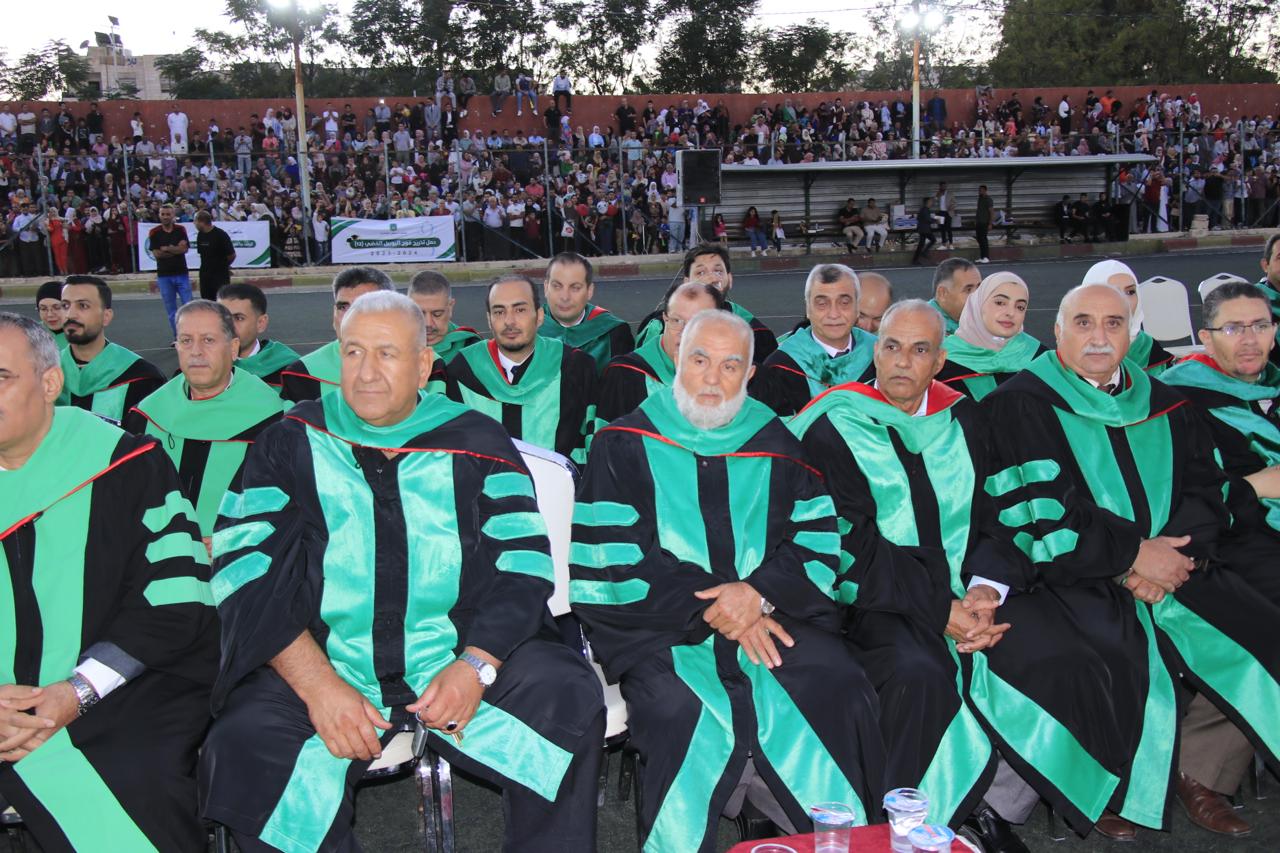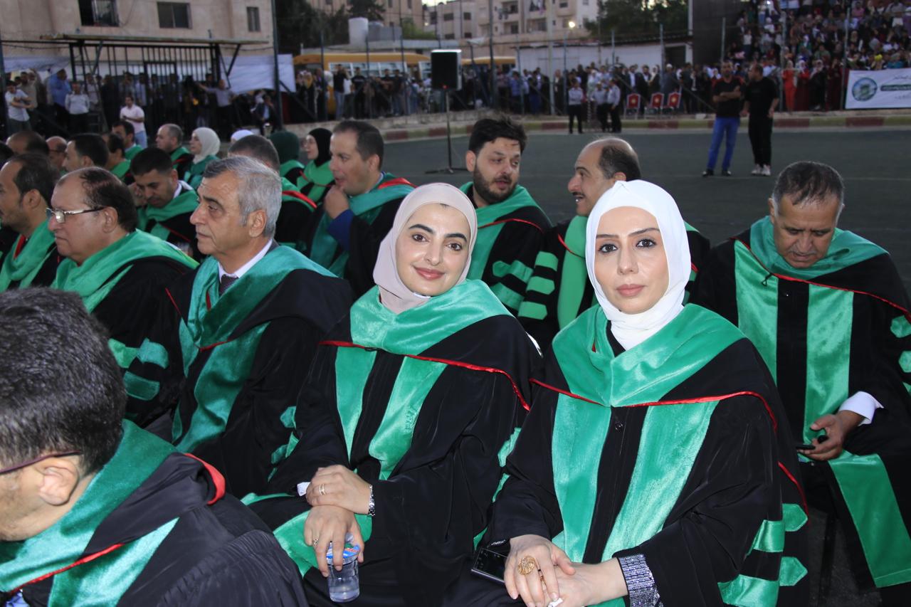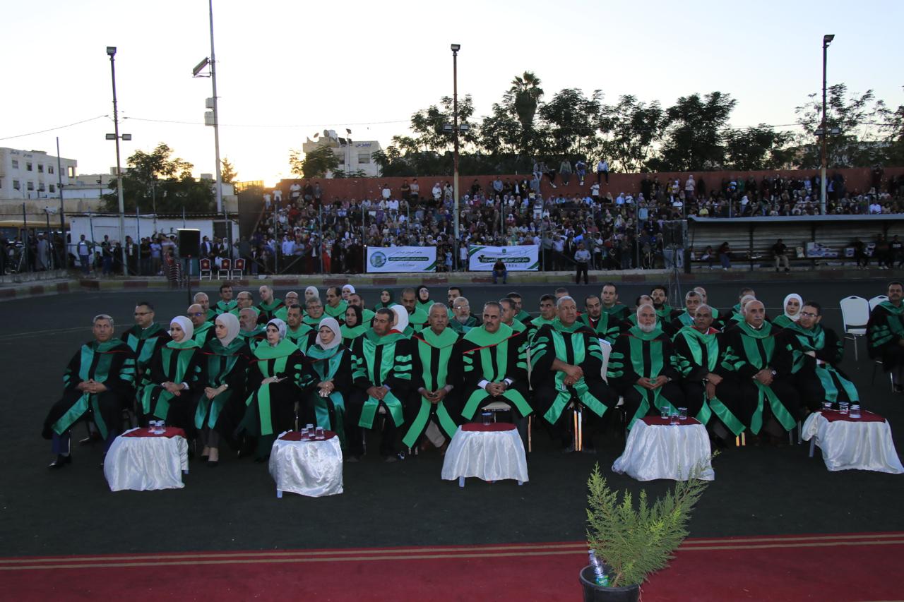 وفي نهاية حفل التخريج الذي أقيم في الملعب البلدي في اربد قام الدكتور الصمادي ورئيس الجامعة الهنانده بتسليم الطلبة شهادتهم بحضورعمداء كليات الجامعة واعضاء الهيئة التدريسية في الجامعة وأولياء أمور الطلبة.
