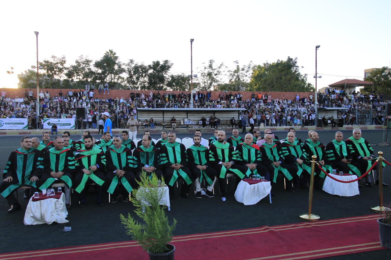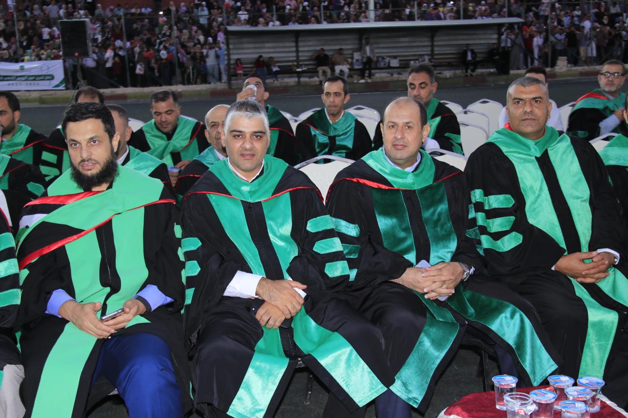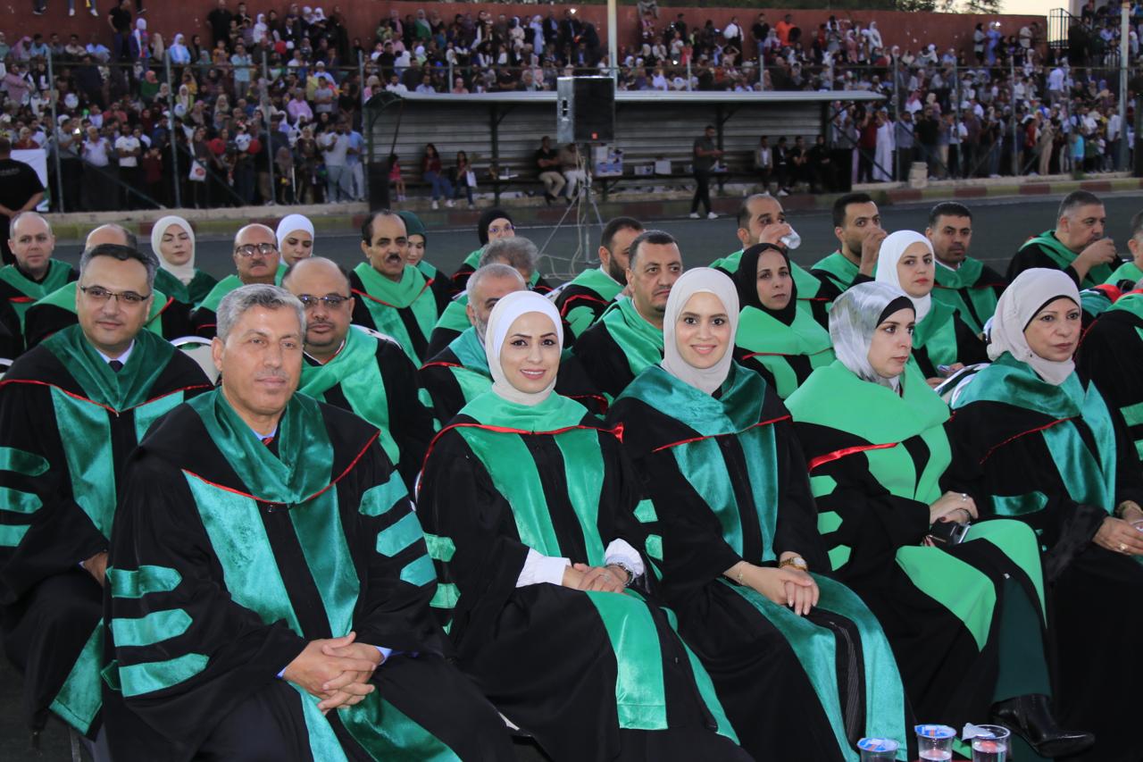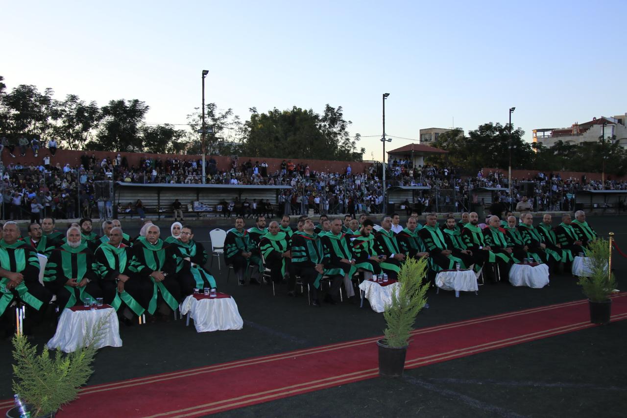 وفي نهاية حفل التخريج الذي أقيم في الملعب البلدي في اربد قام الدكتور الصمادي ورئيس الجامعة الهنانده بتسليم الطلبة شهادتهم بحضورعمداء كليات الجامعة واعضاء الهيئة التدريسية في الجامعة وأولياء أمور الطلبة.