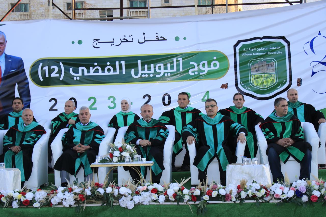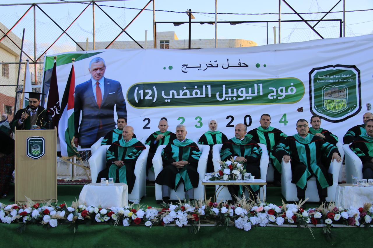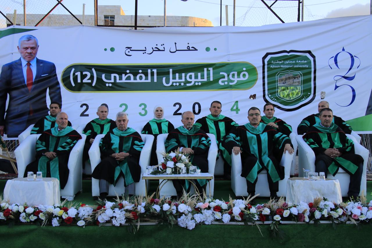 رعى رئيس مجلس أمناء جامعة عجلون الوطنية الدكتور محمد نور الصمادي حفل تخريج فوج (12) فوج اليوبيل الفضي للفصول الدراسية الأول والثاني والصيفي للأعوام (٢٠٢٣ /٢٠٢٤) من طلبتها في برامج البكالوريوس والماجستير والدبلوم العالي بحضور رئيس الجامعة الأستاذ الدكتور فراس الهنانده وعمداء الكليات والهيئتين التدريسية والإدارية في الجامعة وأولياء أمور الطلبة الخريجين .