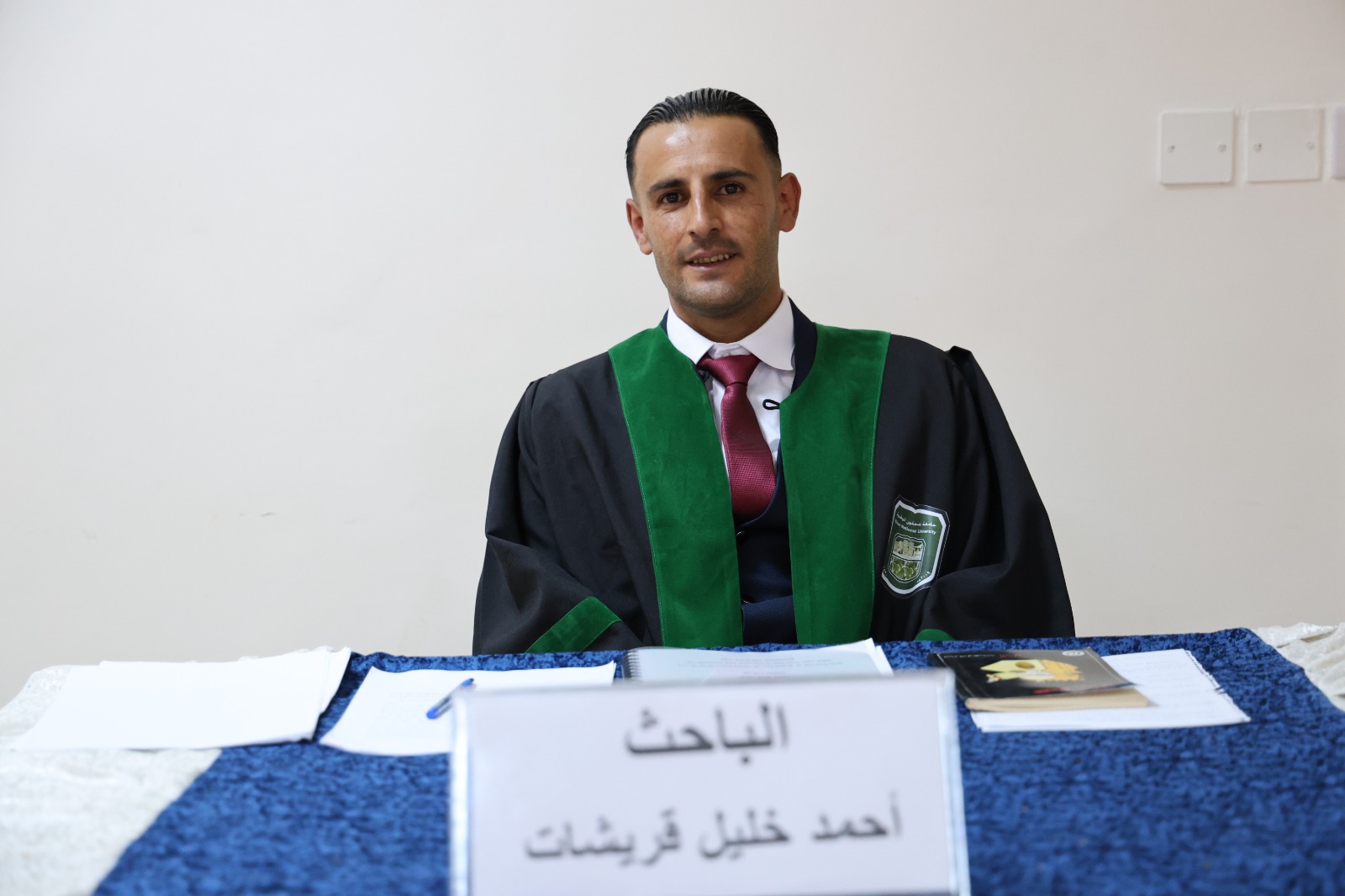 نوقشت اليوم السبت، في ربوع كلية الآداب في قسم اللغة العربية وآدابها أول رسالة ماجستير للطالب أحمد خليل قريشات بعنوان “الصورة الفنية في ديوان “عيون سلمى” للشاعر حسن بكر العزازي عناصر التشكيل والابداع”.