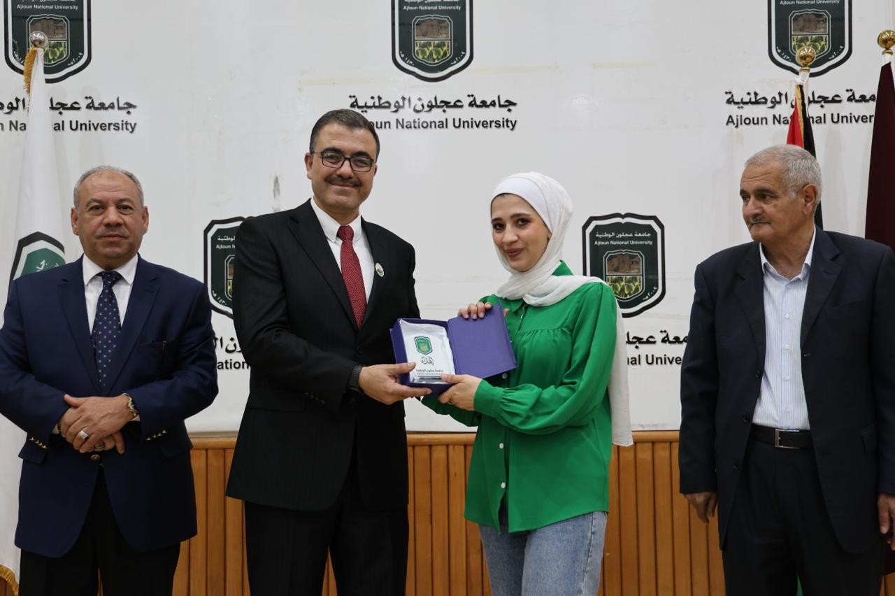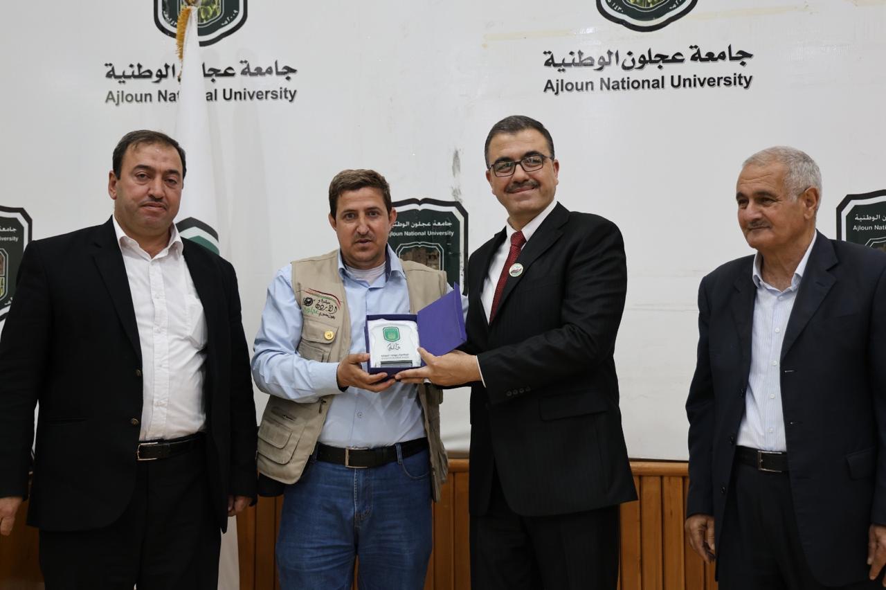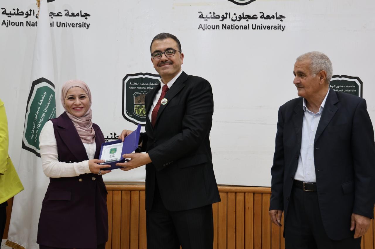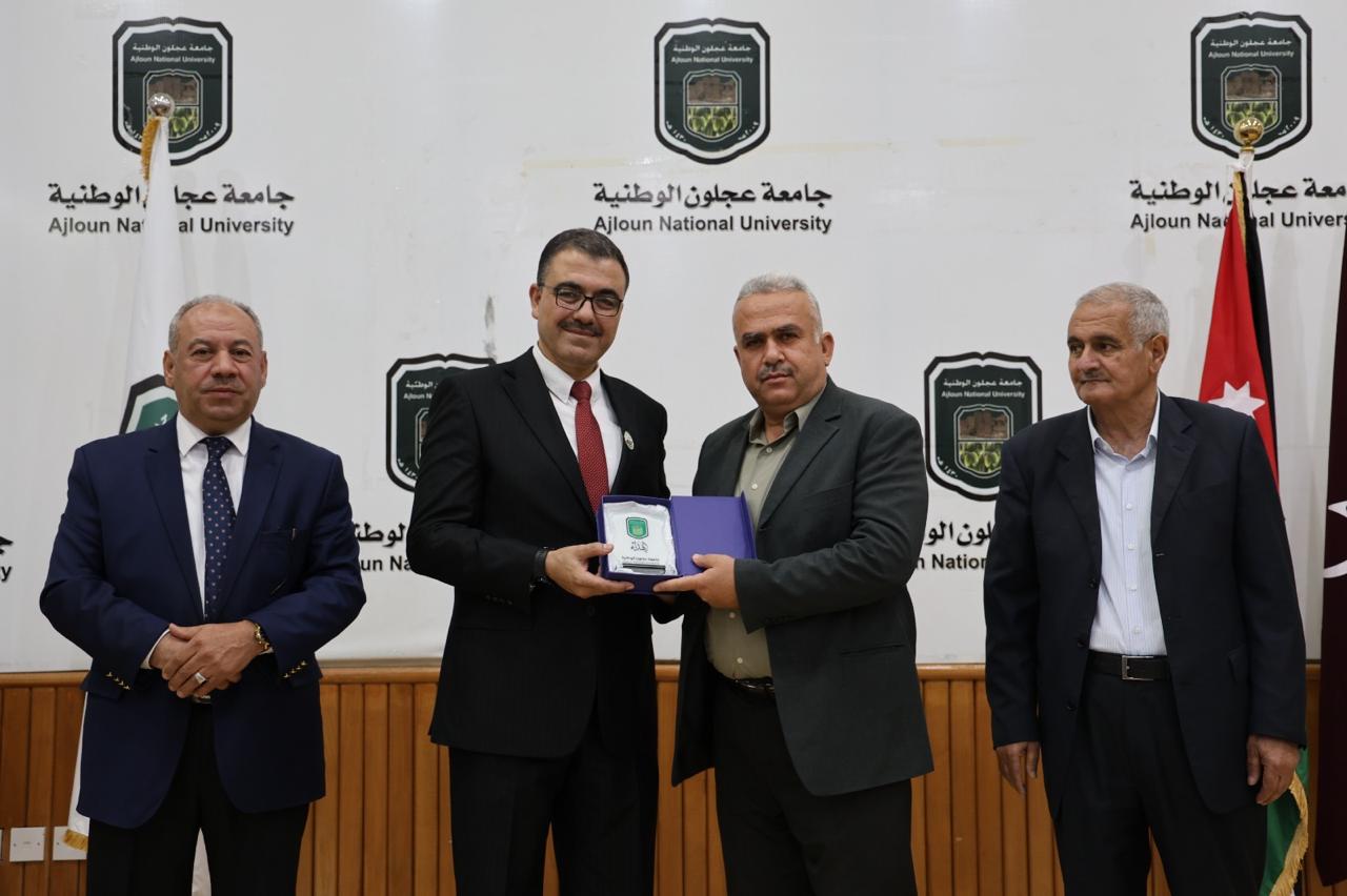 وفي ختام الحفل، قدم رئيس الجامعة الدروع التقديرية لرئيس مجلس التطوير التربوي في محافظة عجلون، ولشبكة مدارس العيون، وشبكة مدارس صنعار والمرجم وبير الدالية وعصيم والطالبية، وشبكة مدارس عنجرة، وشبكة مدارس بلاص والسفينه والساخنه والجبل الأخضر والصفصافة والزرّاعة وخشيبه ، كما كرم رئيس مجلس المحافظة عمر المومني والمشرف التربوي المتقاعد الدكتور عمر القضاة بدوره قدم رئيس مجلس التطوير التربوي دروعاً تقديريةً لرئيس الجامعة الأستاذ الدكتور فراس الهنانده، ورئيس مجلس الأمناء الدكتور محمد نور الصمادي، ومديرة دائرة الاتصال المؤسسي والعلاقات الدولية في الجامعة أماني الطوالبه.