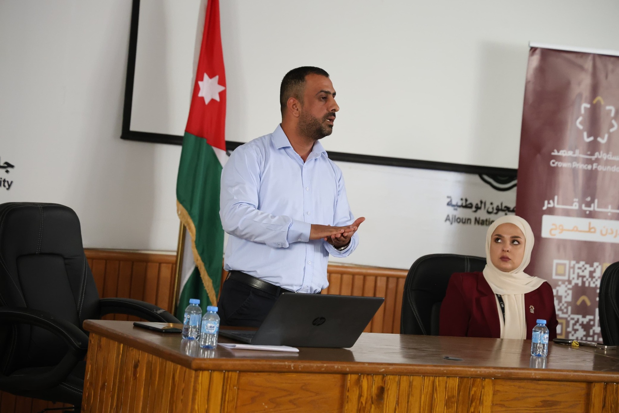 واستهلّت فعاليات الورشة بكلمة ترحيبية ألقاها عميد شؤون الطلبة الدكتور ياسين القضاة، رحّب فيها بالحضور وبممثلي مؤسسة ولي العهد، مؤكدًا أهمية هذه الورشة في توعية الطلبة بمتطلبات سوق العمل وتنمية مهاراتهم المستقبلية، بما ينسجم مع رسالة الجامعة في إعداد جيل مؤهل ومبدع. كما قدّم الدكتور القضاة نبذة تعريفية عن مؤسسة ولي العهد، مشيرًا إلى دورها الريادي في دعم المبادرات الشبابية وتنفيذ البرامج التي تعزّز الابتكار والريادة وتخدم التنمية الوطنية المستدامة.