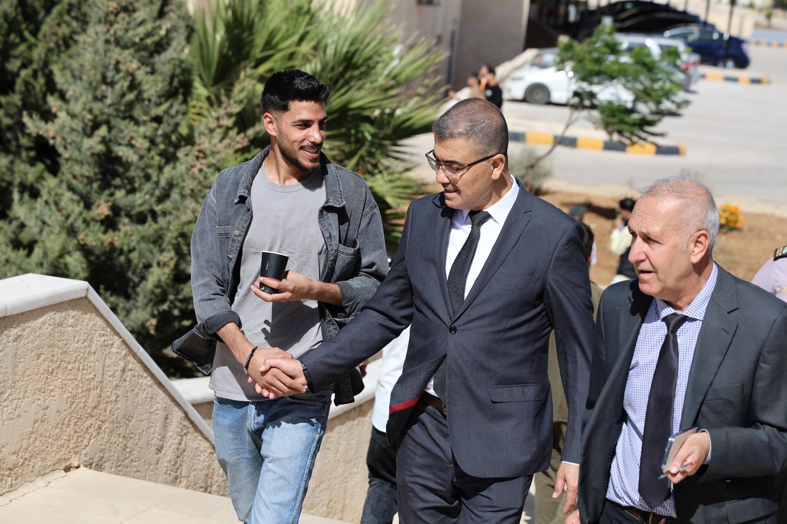 وشملت الجولة قاعات التدريس والمختبرات العلمية ومراكز التدريب والمكتبة، حيث التقى الدكتور الهناندة أعضاء الهيئتين التدريسية والإدارية وعددًا من الطلبة، مستمعًا إلى آرائهم وملاحظاتهم حول سير العملية التعليمية ومستوى الخدمات المقدمة لهم داخل الحرم الجامعي.