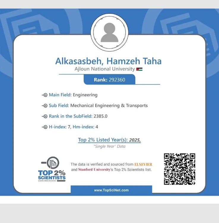 اختيار الدكتور حمزة الكساسبة ضمن قائمة أفضل 2% من علماء العالم لعام 2025