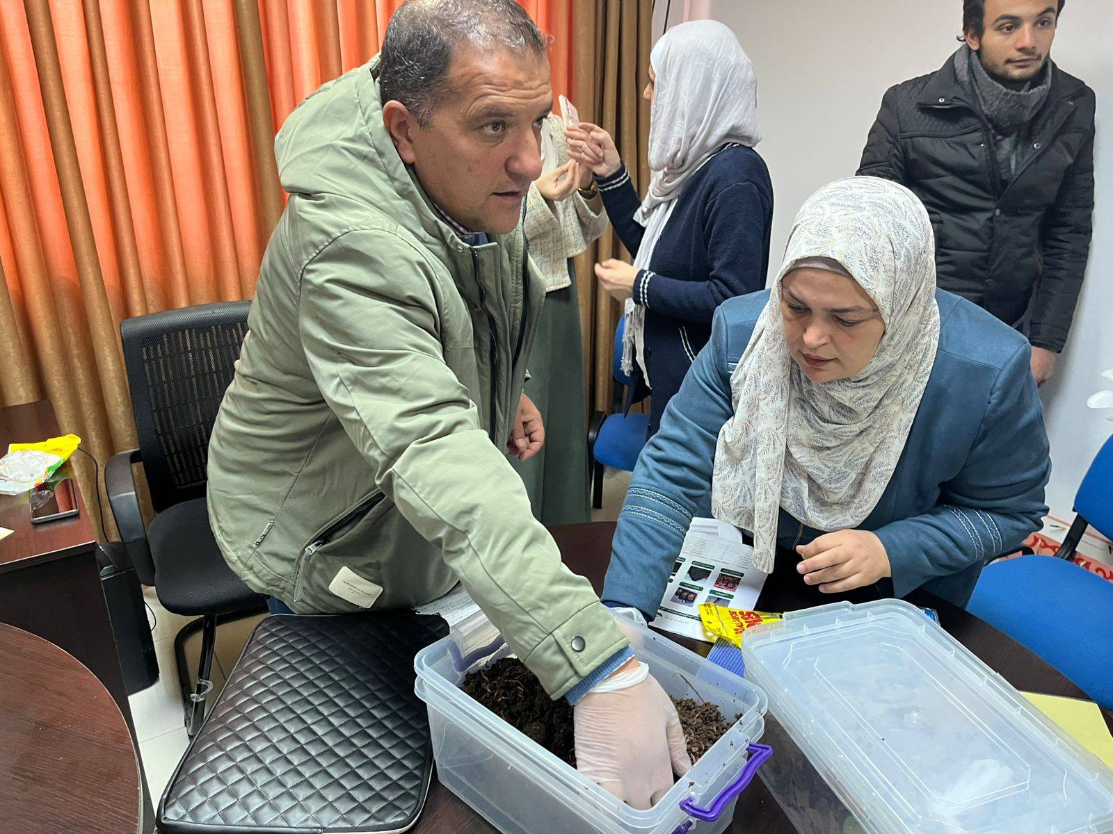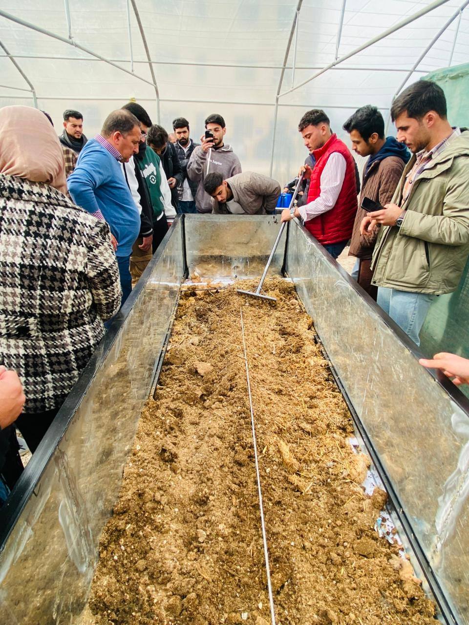 كما اشتملت الورشة على تدريب عملي ميداني، شارك فيه طلبة الكلية، تم خلاله استعراض خطوات إعداد الفيرمي كومبوست عمليًا، وطرق العناية بدودة الرد ويجلر (Red Wiggler)، وآلية استخدام السماد الناتج في الحقول الزراعية، حيث كان للطلبة دور فاعل في النقاش وطرح الأسئلة العلمية المرتبطة بالتجربة التطبيقية.
