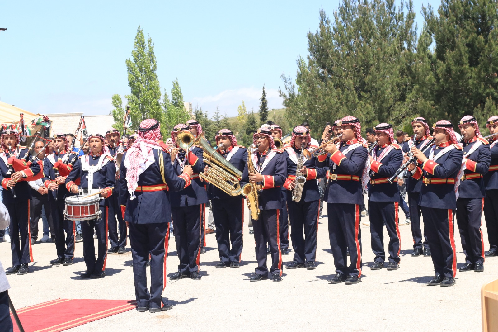واشتمل الاحتفال الذي قدمته الطالبة رشا محافظة على قصيدة شعرية للطالب محمد الزغول، وفقرات فنية لموسيقات القوات المسلحة الأردنية وفرقة كفر جايز الشعبية .