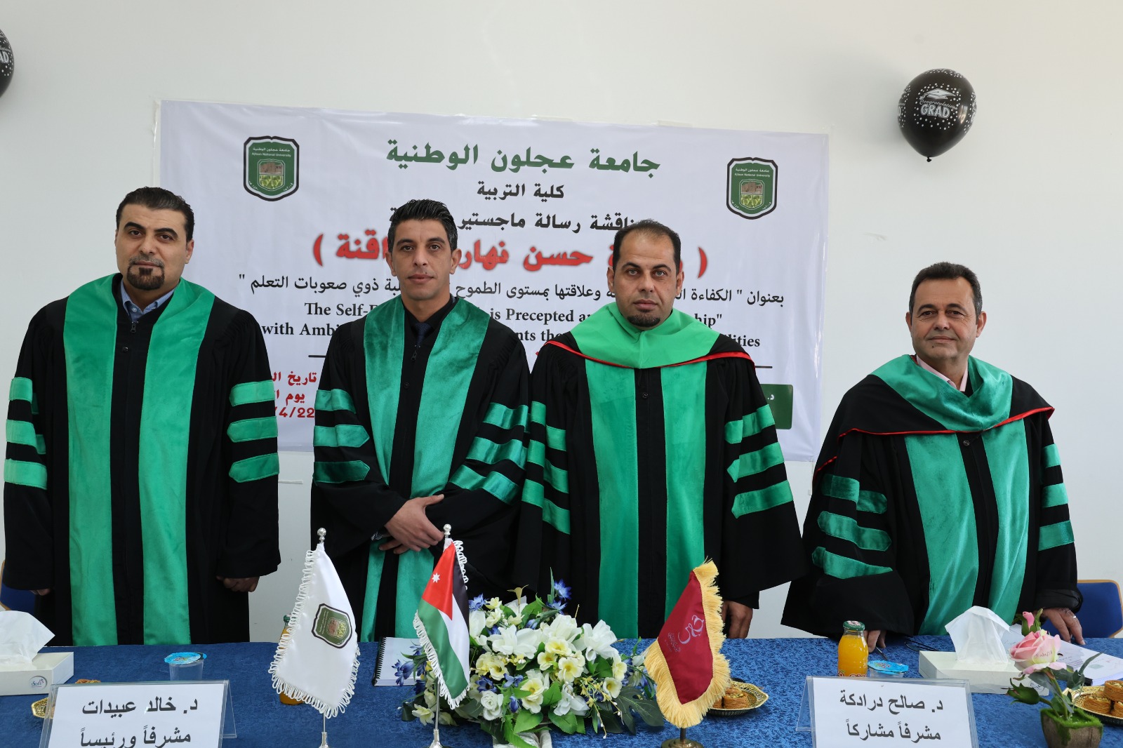 نوقشت في كلية العلوم التربوية في جامعة عجلون الوطنية رسالة الماجستير بعنوان “الكفاءة الذاتية المدركة وعلاقتها بمستوى الطموح لدى طلبة صعوبات التعلم”، للطالبة رفيدة حسن القواقنة، وبإشراف رئيسي للدكتور خالد عبيدات، والدكتور صالح درادكة مشرفاً مشاركاً، وعضوية كل من الدكتور محمد العمري مناقشاً داخلياً، والدكتور ماهر شرادقة مناقشاً خارجياً من جامعة عمان العربية.