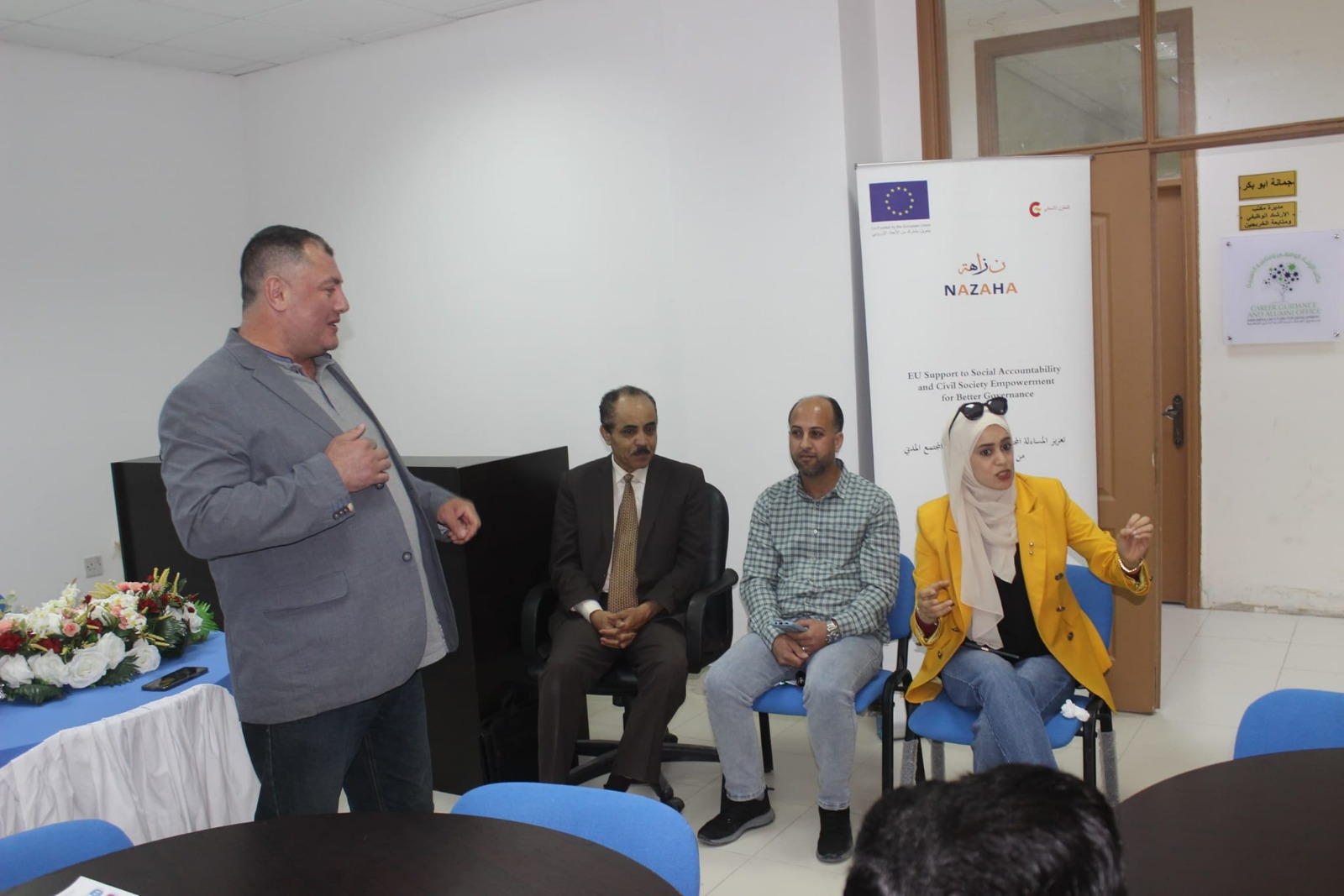 نظم مكتب الإرشاد الوظيفي ومتابعة الخريجين التابع لعمادة شؤون الطلبة في جامعة عجلون الوطنية بالتعاون مع أكاديمية التنمية المتكاملة للتدريب والاستشارات الممثلة بالمدير العام الدكتور عبدالله مصلح، ورشتي عمل توعويتين ضمن محاور “الانتخابات: المشاركة المدنية والمسؤولية ” و”حقوق وواجبات ومسؤوليات الشباب”، بحضور الباحثة في الشؤون السياسية الدكتورة شيم المجالي، وعميد كلية الآداب الأستاذ الدكتور محمود الصبح، والدكتور خالد الشريدة، ومديرة مكتب الإرشاد الوظيفي ومتابعة الخريجين الدكتور جمانة أبو بكر، وعدد من طلبة الجامعة.