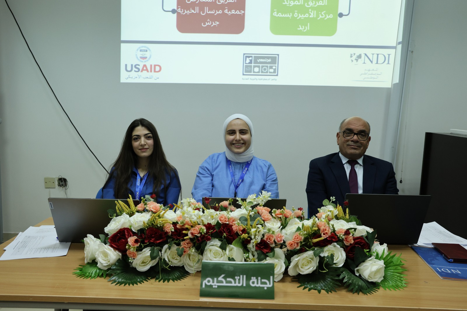 وأُقيمت هذه البطولة في إقليم الشمال لمشاركي برنامج “مجتمعي” في كل من المحافظات إربد، وعجلون، وجرش، بتنظيم من المعهد الديمقراطي الوطني للشؤون الدولية والوكالة الأمريكية للتنمية الدولية (USAID) في جامعة عجلون الوطنية.
