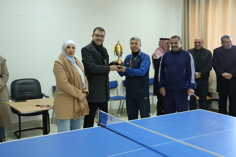وفي ختام البطولة، قام الأستاذ الدكتور فراس الهناندة بتسليم الجوائز والميداليات للفائزين، مؤكداً على أهمية هذه الفعاليات في تعزيز الروابط الاجتماعية بين أعضاء الهيئة التدريسية وتحفيزهم على ممارسة الأنشطة الرياضية لما لها من أثر إيجابي على الصحة البدنية والذهنية.