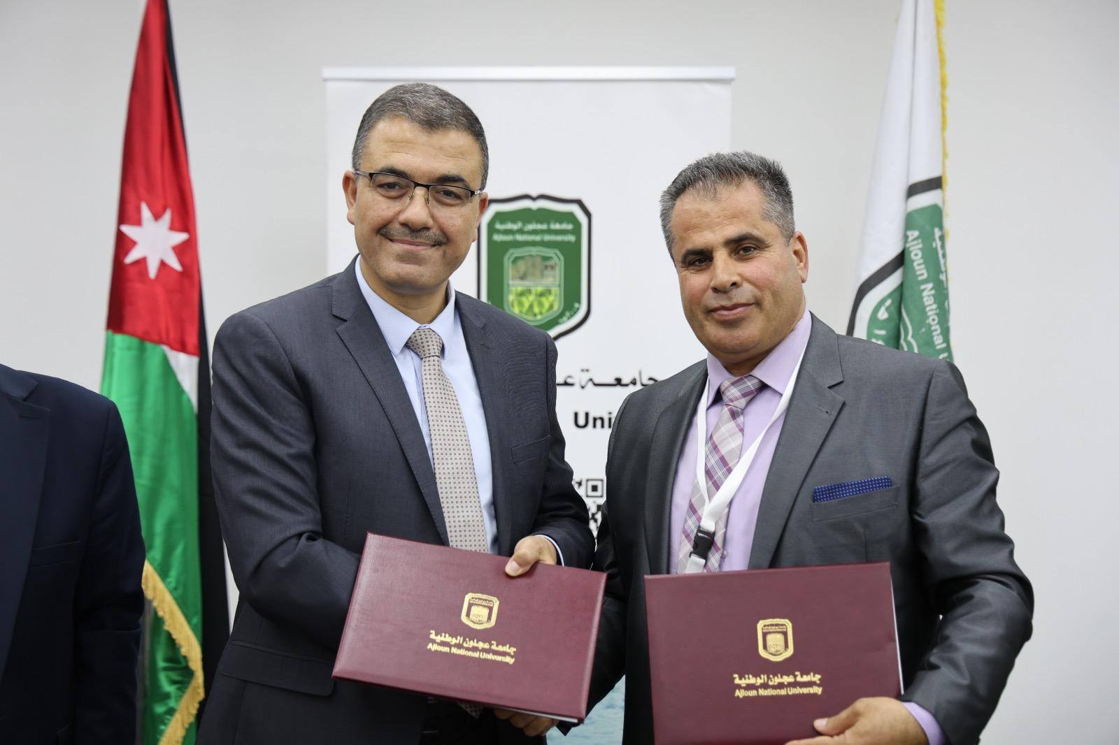 وقّع الاتفاقية عطوفة الأستاذ الدكتور فراس الهناندة، رئيس جامعة عجلون الوطنية، والدكتور عماد عياصرة، رئيس الجمعية، بحضور عميد كلية الزراعة الدكتور إبراهيم الطاهات، وعدد من أعضاء الهيئة التدريسية في الجامعة وأعضاء الجمعية.