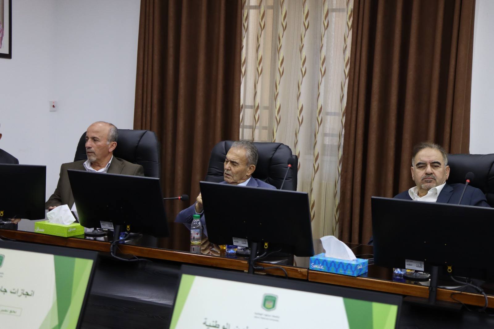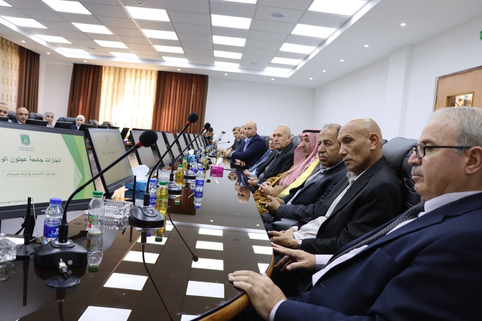 وحضر الإيجاز كلٌّ من رئيس مجلس شركة عجلون الوطنية للاستثمار والتنمية الأستاذ المحامي زياد خليفة وأعضاء المجلس، ورئيس مجلس شركة عجلون الوطنية للثقافة والتعليم الدكتور المهندس حسن الدباس وأعضاء المجلس، ورئيس مجلس الأمناء الدكتور محمد نور الصمادي وأعضاء المجلس، إلى جانب عمداء الكليات وعدد من أعضاء الهيئتين التدريسية والإدارية.