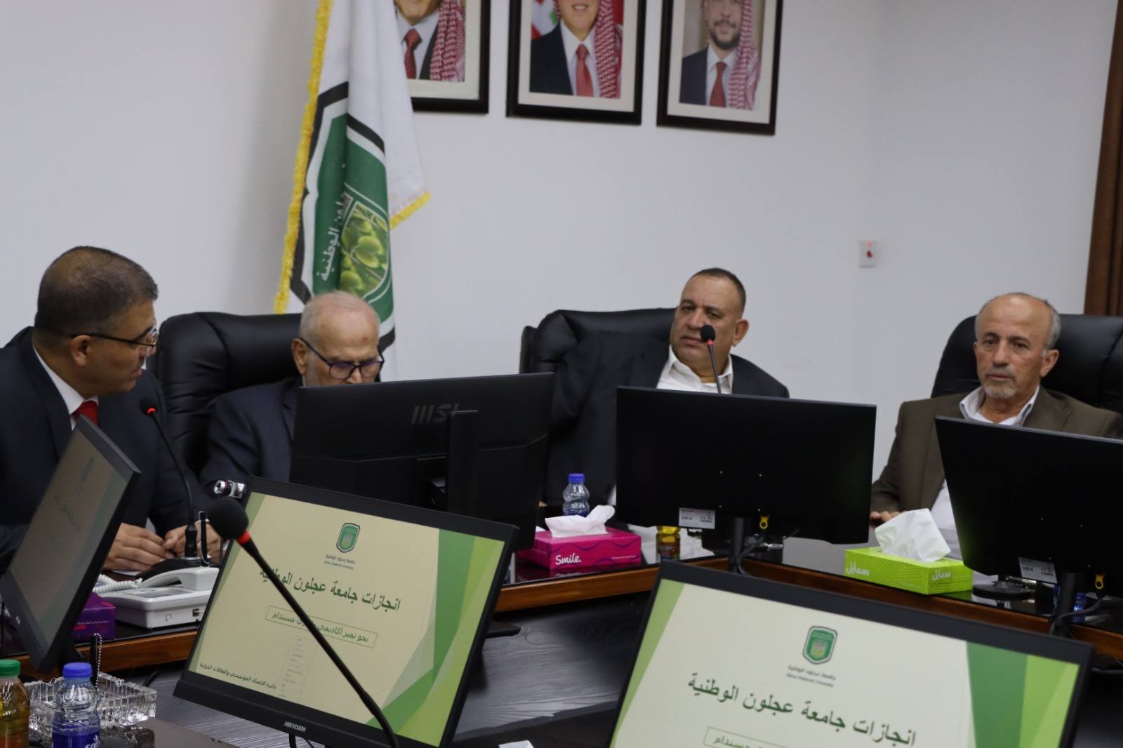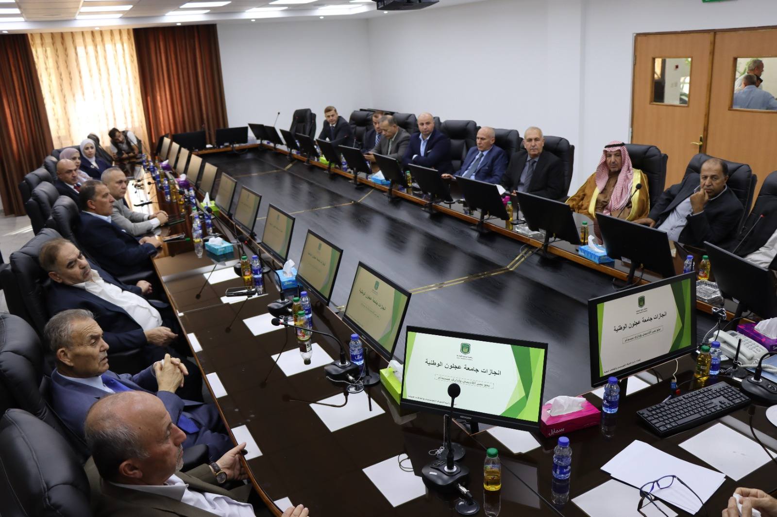 قدّم رئيس جامعة عجلون الوطنية الأستاذ الدكتور فراس الهناندة إيجازًا رقميًا شاملًا أمام رؤساء وأعضاء مجالس الحاكمية في الجامعة، استعرض خلاله أبرز الإنجازات التي تحققت خلال الأعوام الماضية بلغة الأرقام والحقائق، التي تجسّد مسيرة التطور الكبير الذي تشهده الجامعة أكاديميًا وإداريًا وبحثيًا وإنشائيًا.