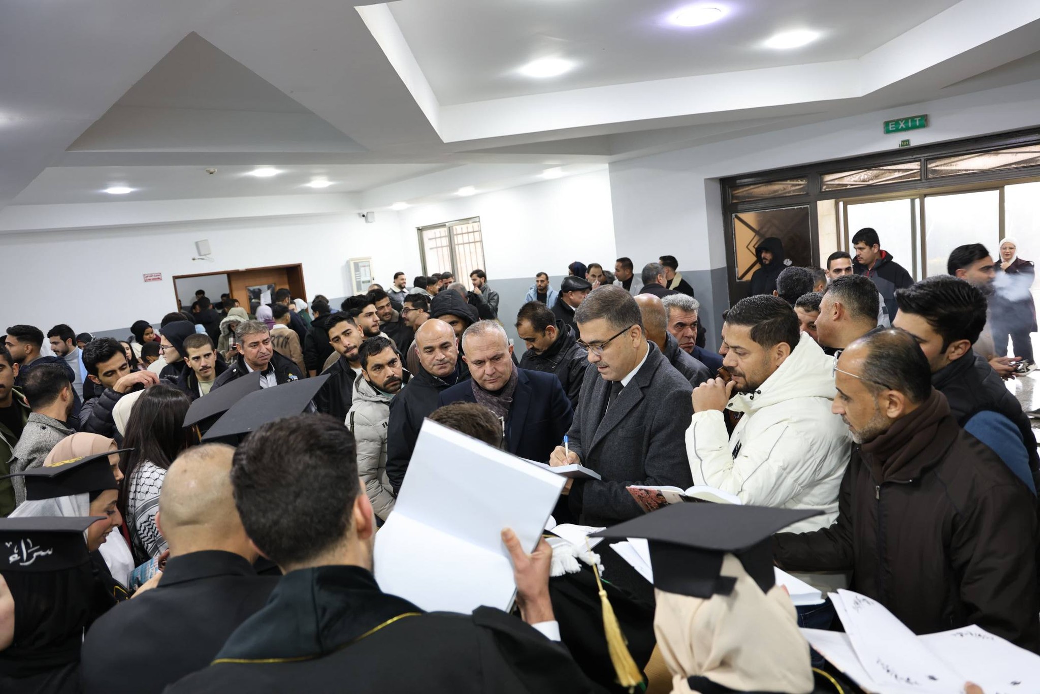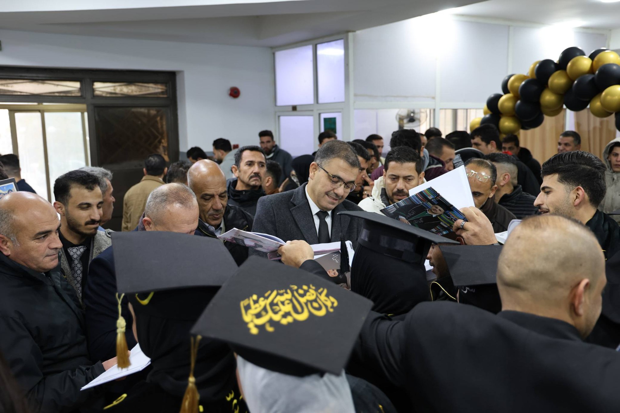 وعقب الانتهاء من فعاليات اليوم العالمي للغة العربية، افتتحت عمادة شؤون الطلبة دفاتر الخريجين، بحضور رئيس الجامعة، حيث عبّر في حديثة مع الخريجين عن فخره واعتزازه بهم، مؤكدًا أن هذه الخطوة تُجسّد سنوات من العطاء والاجتهاد، وتشكل محطة مفصلية في مسيرتهم العلمية والعملية.