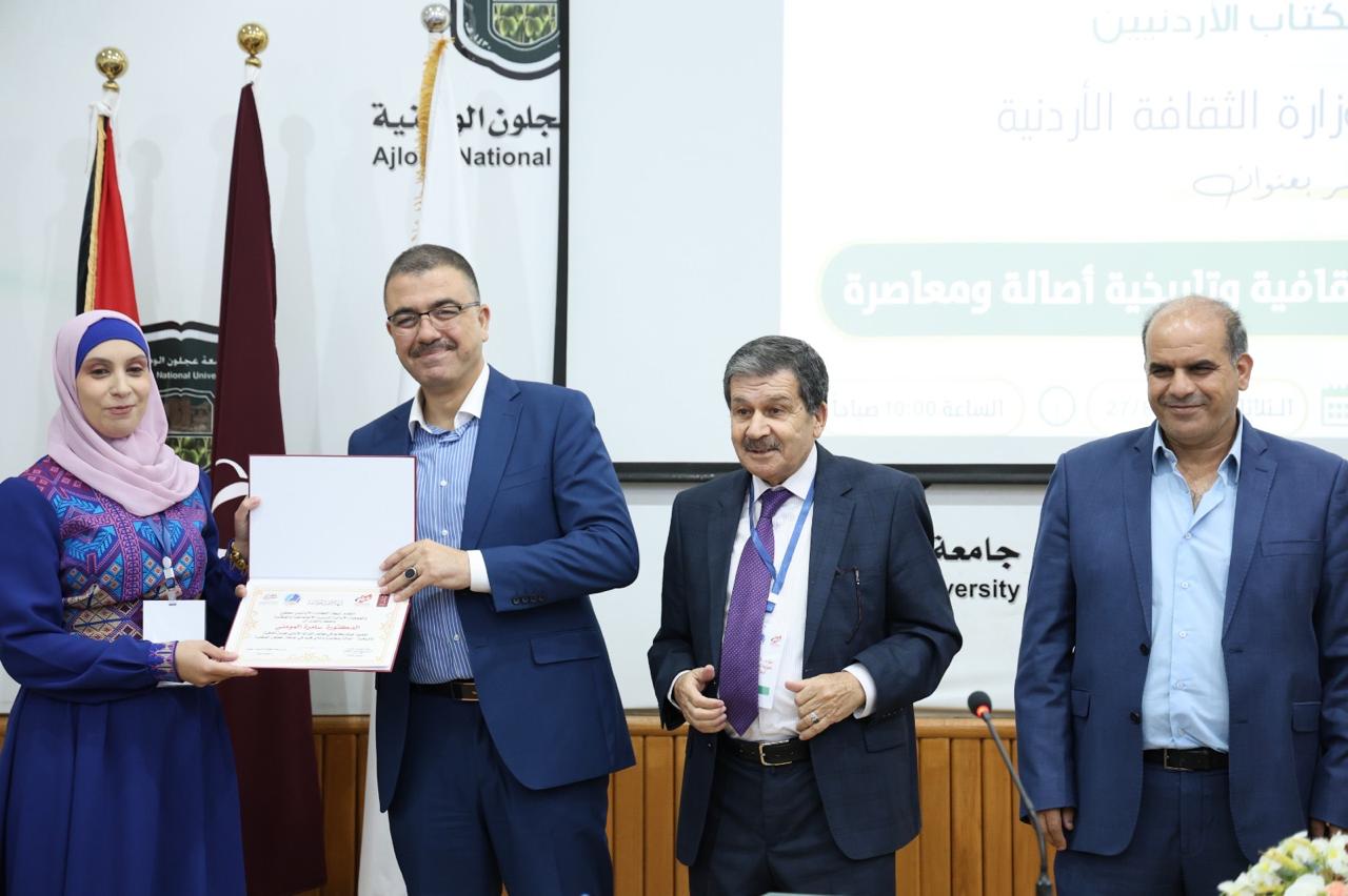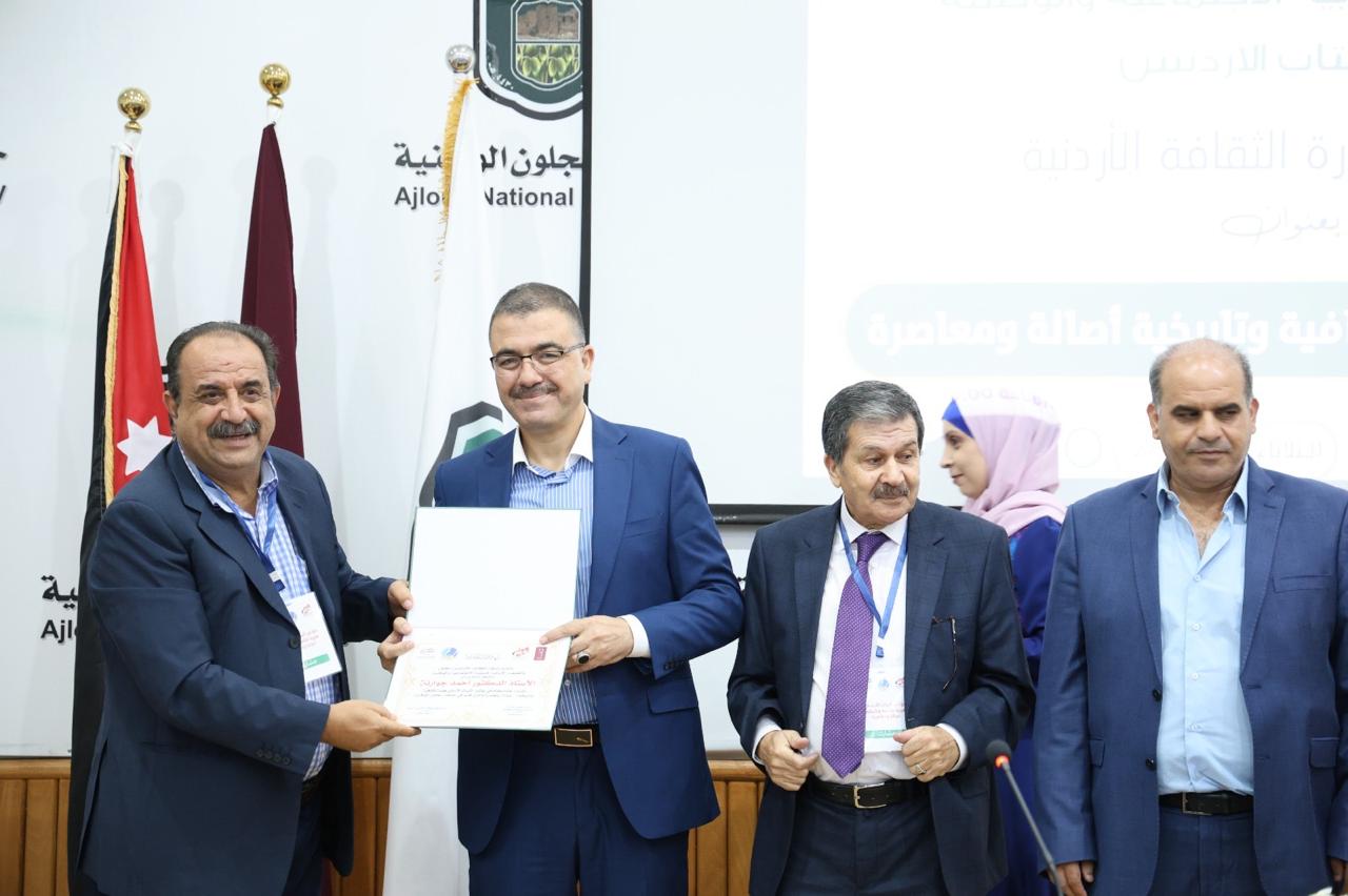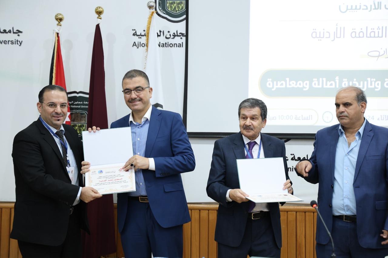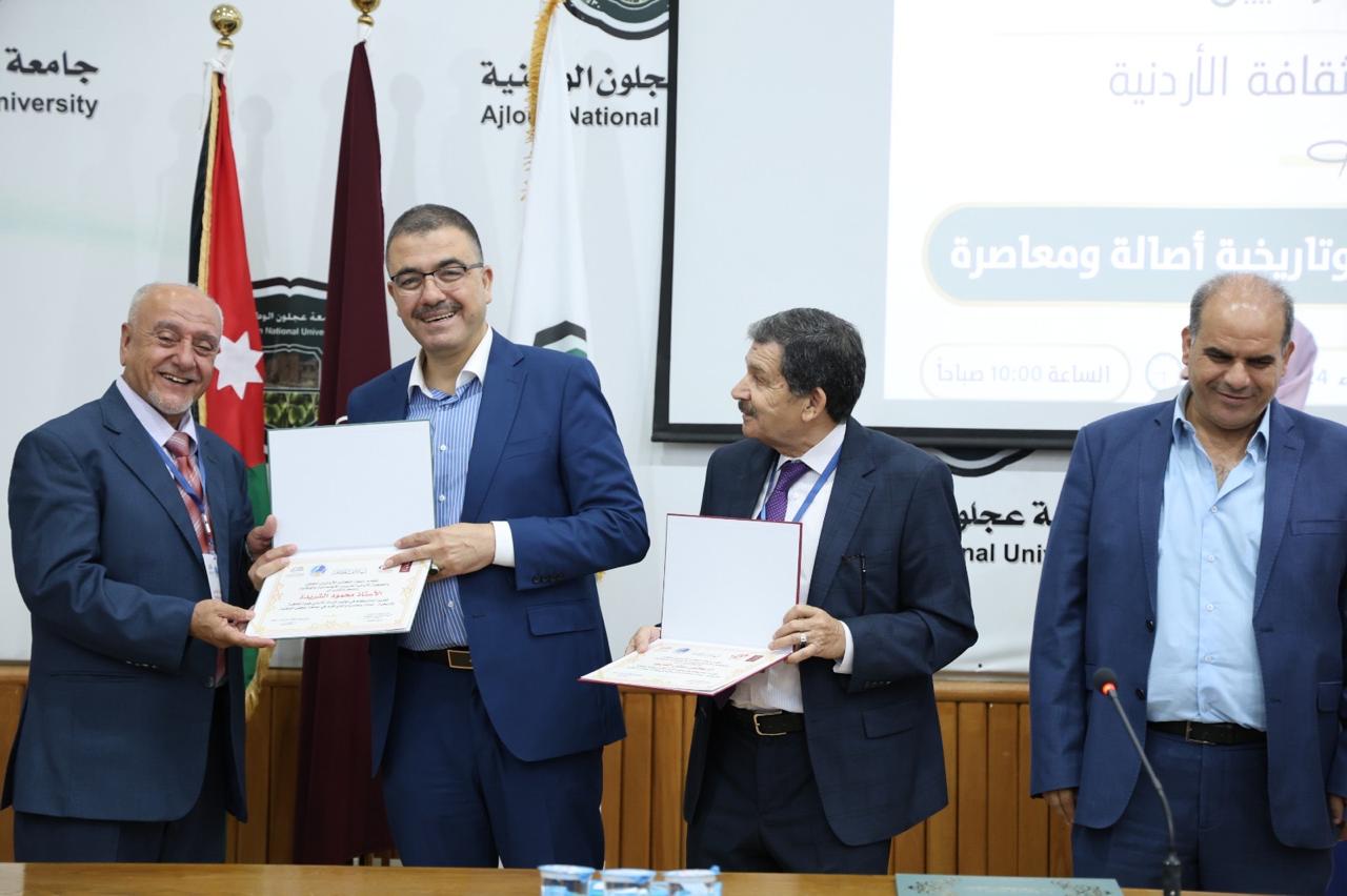 وفي نهاية الافتتاحية تم تبادل الدروع التقديرية بين جامعة عجلون الوطنية والقائمين على الفعالية، بالإضافة إلى تكريم جميع المشاركين والباحثيين بشهادات تقديرية.