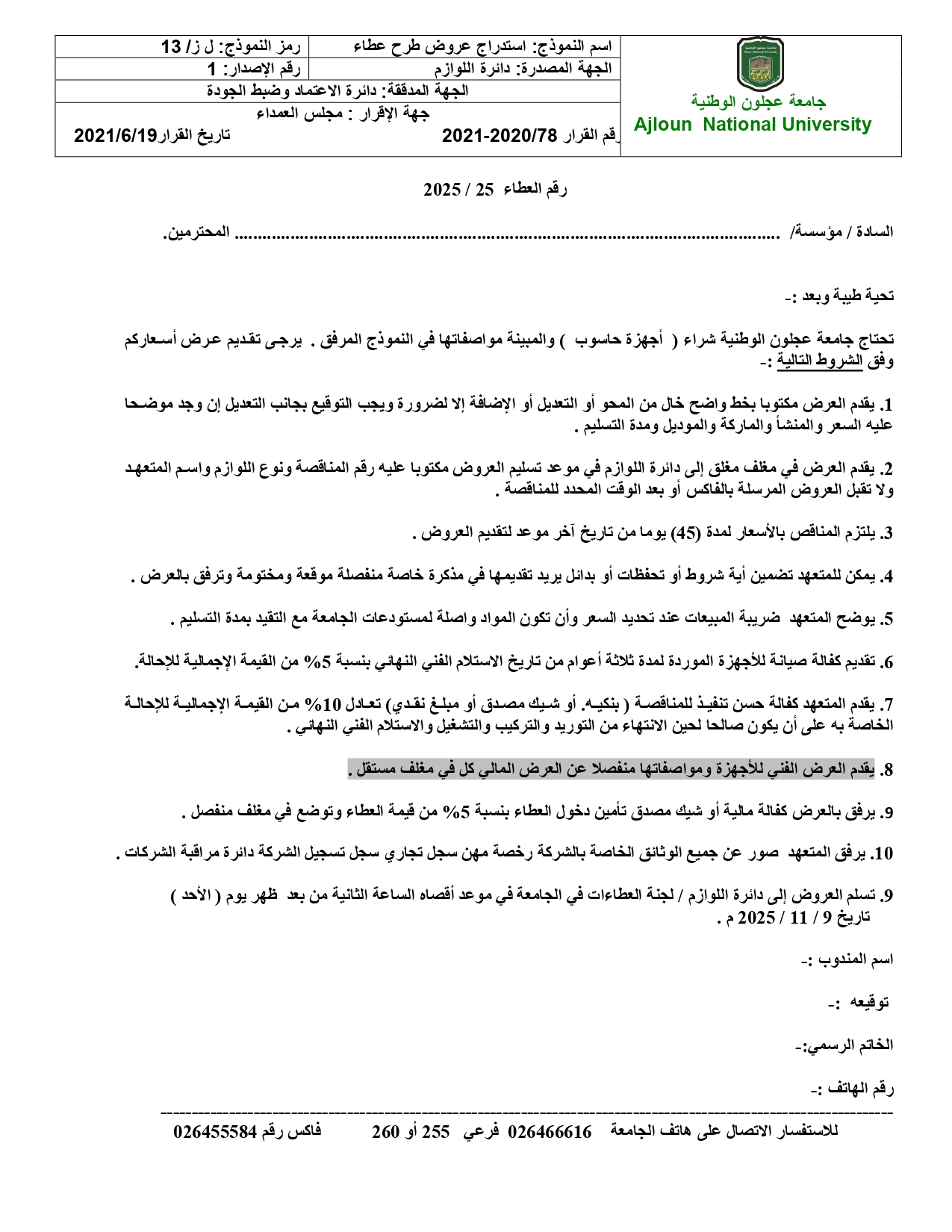 اعلان عطاء / أجهزة حاسوب