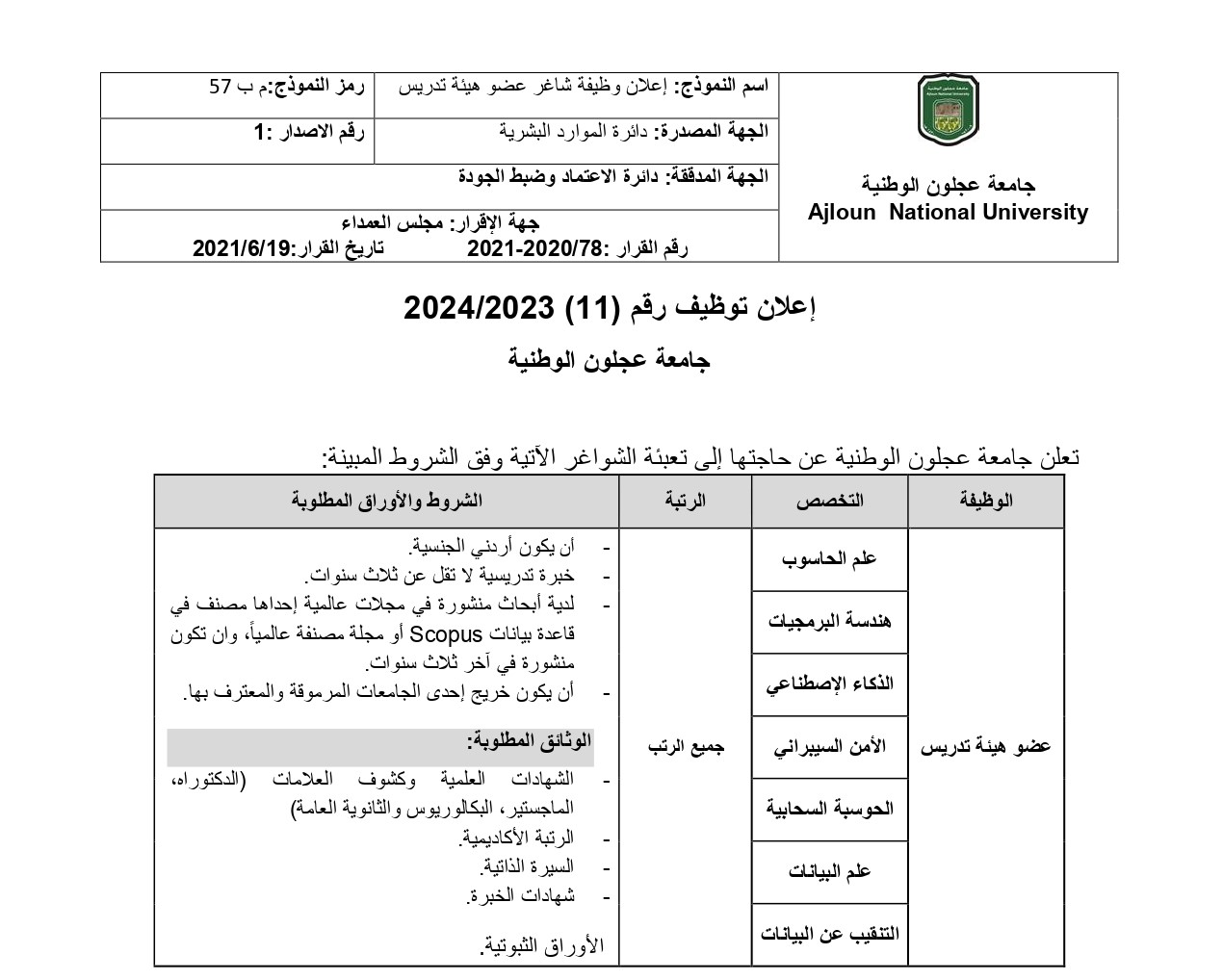 فعلى الراغبين بالتقدم للوظيفة تعبئة النموذج وإرسال الوثائق المطلوبة على الرابط التالي