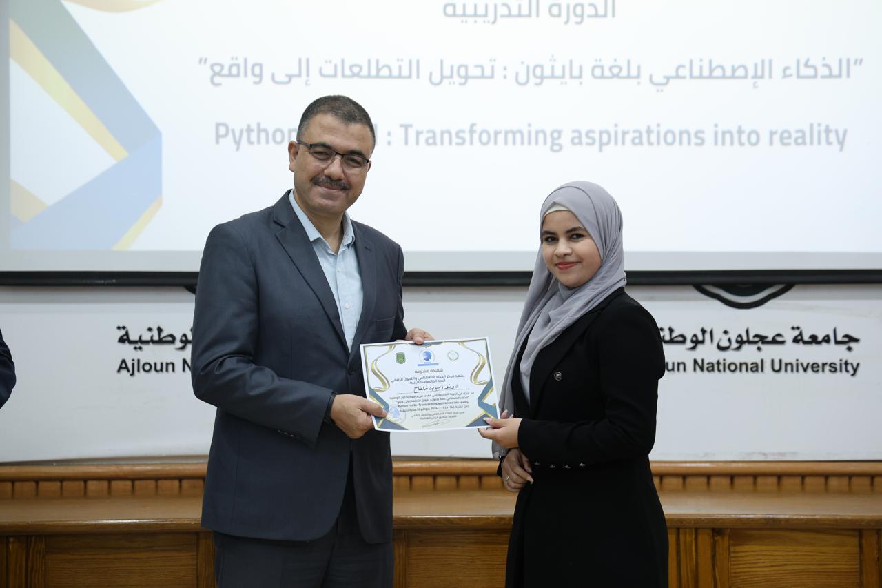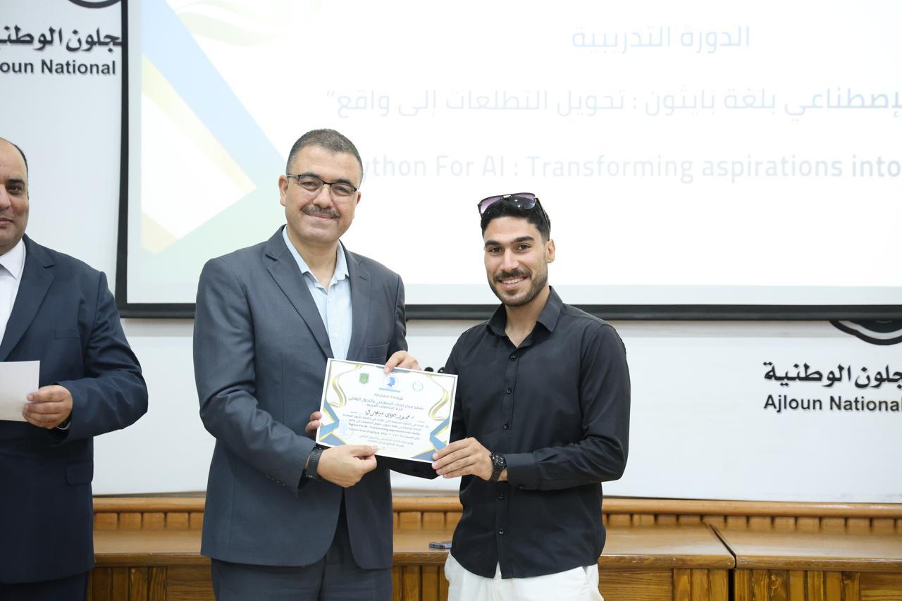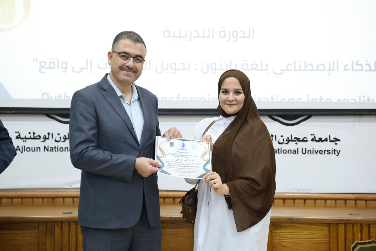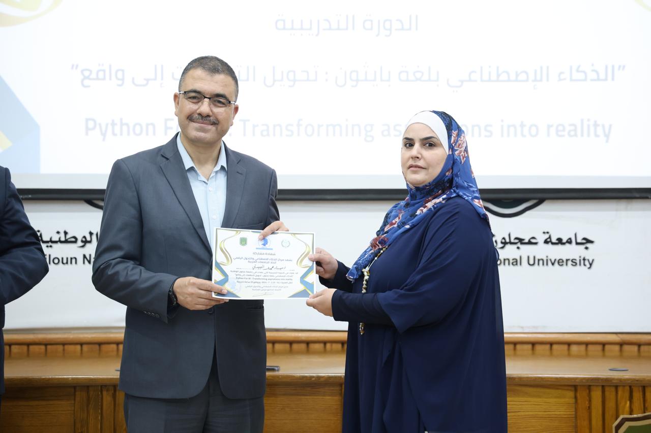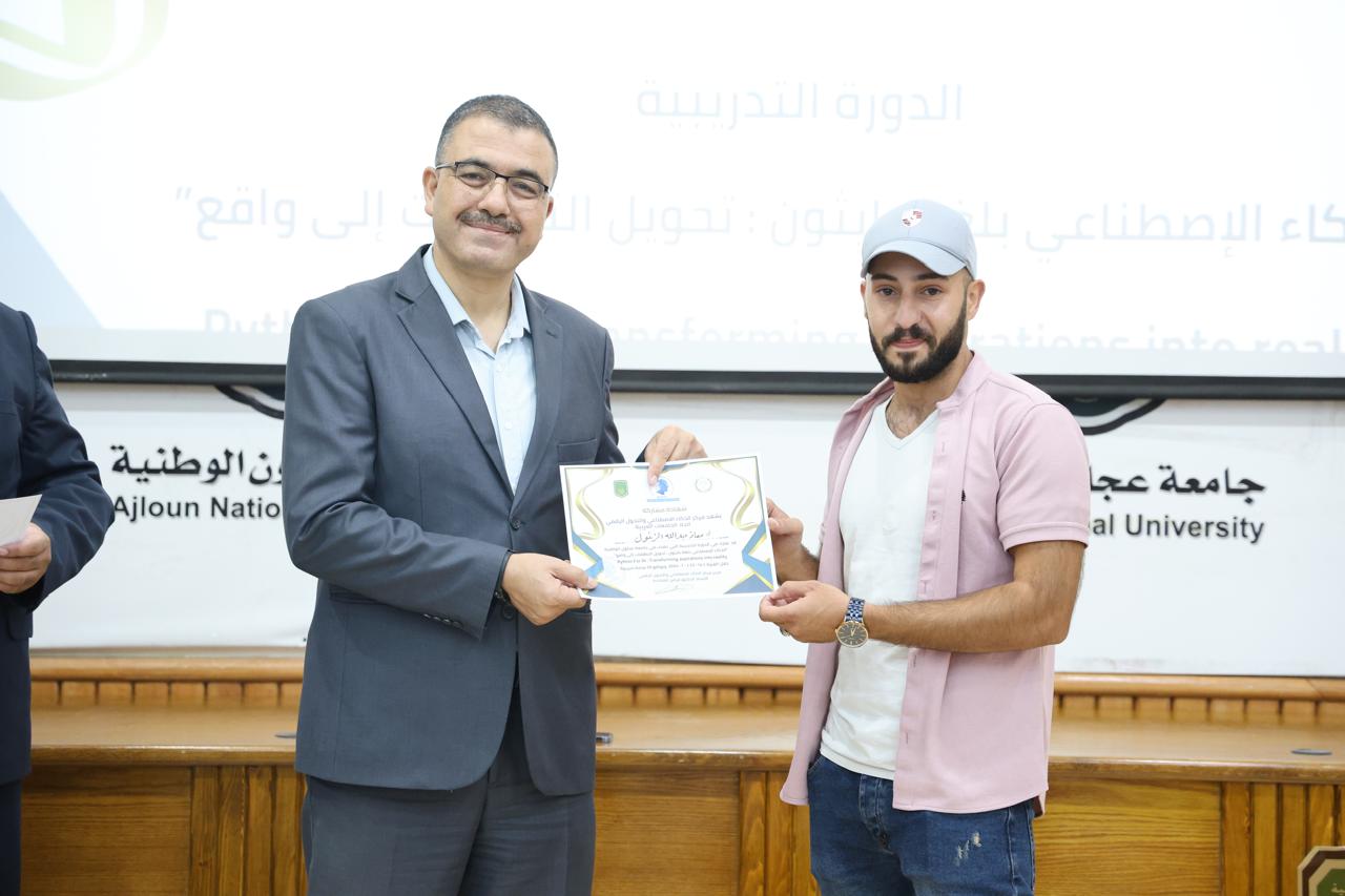 اختتاماً للدورة الثانية في الذكاء الاصطناعيّ التي عقدها مركز الذكاء الاصطناعيّ والتحوّل الرقميّ في جامعة عجلون الوطنية، قدّم رئيس الجامعة الأستاذ الدكتور فراس الهنانده بحضور العمداء، الشهادات التقديرية ل63 مشترك في الدورة، وذلك بعد استكمالهم لمتطلباتها بكل نجاح وتميّز.