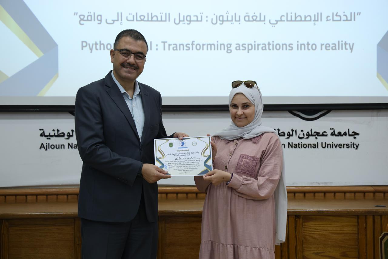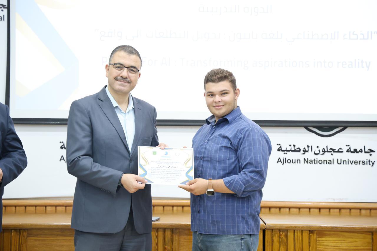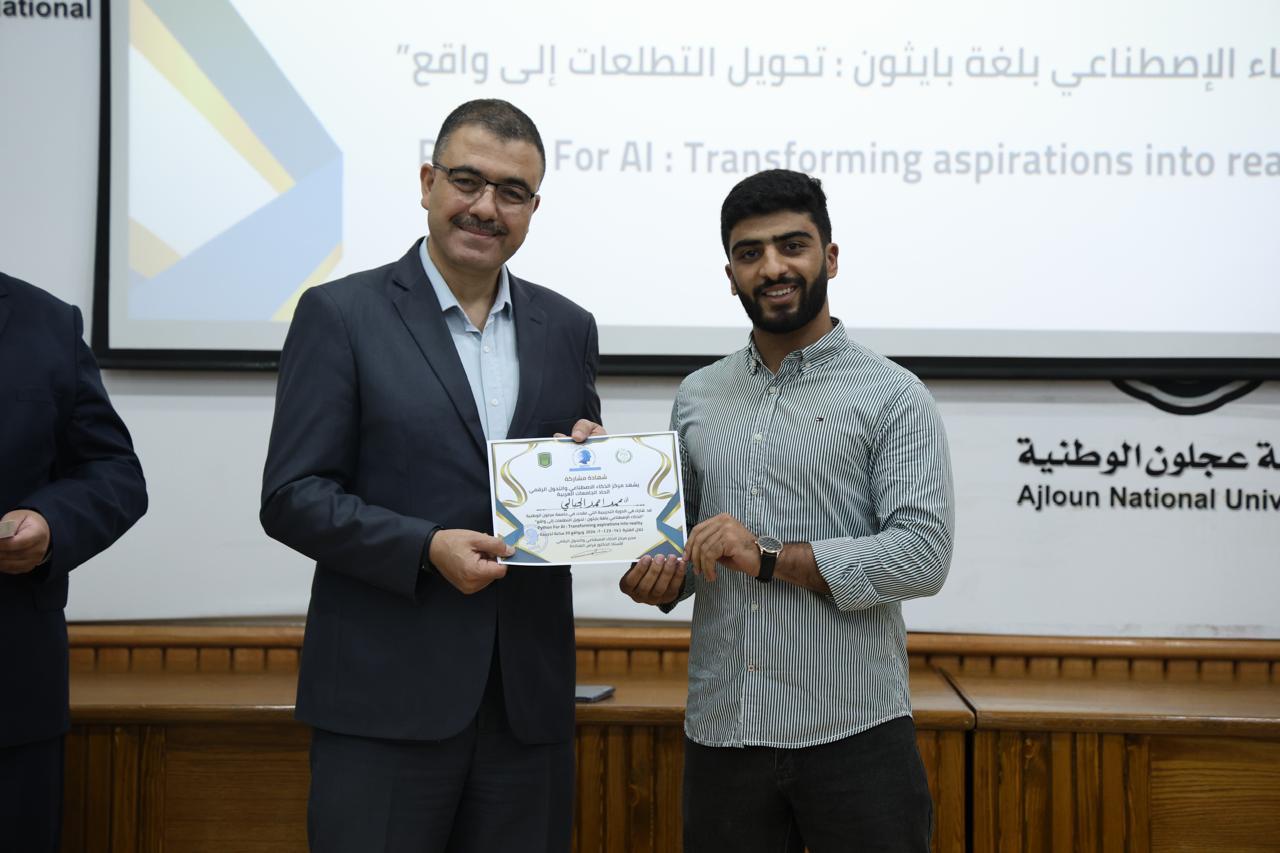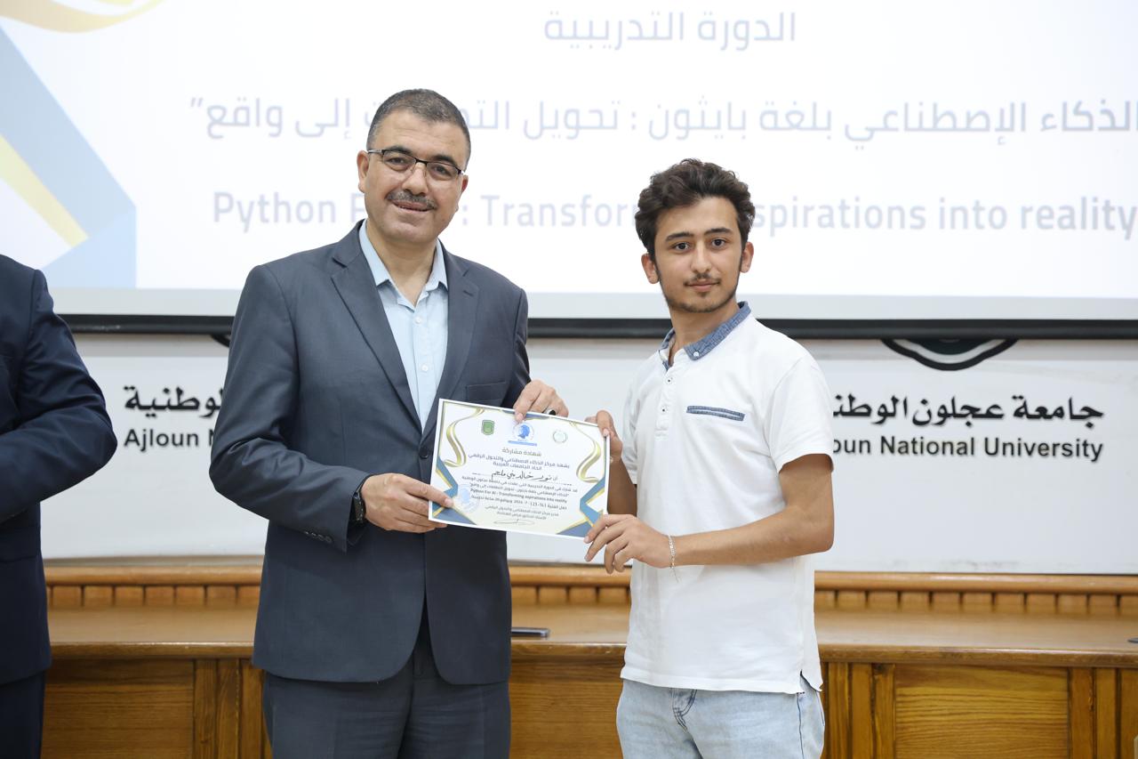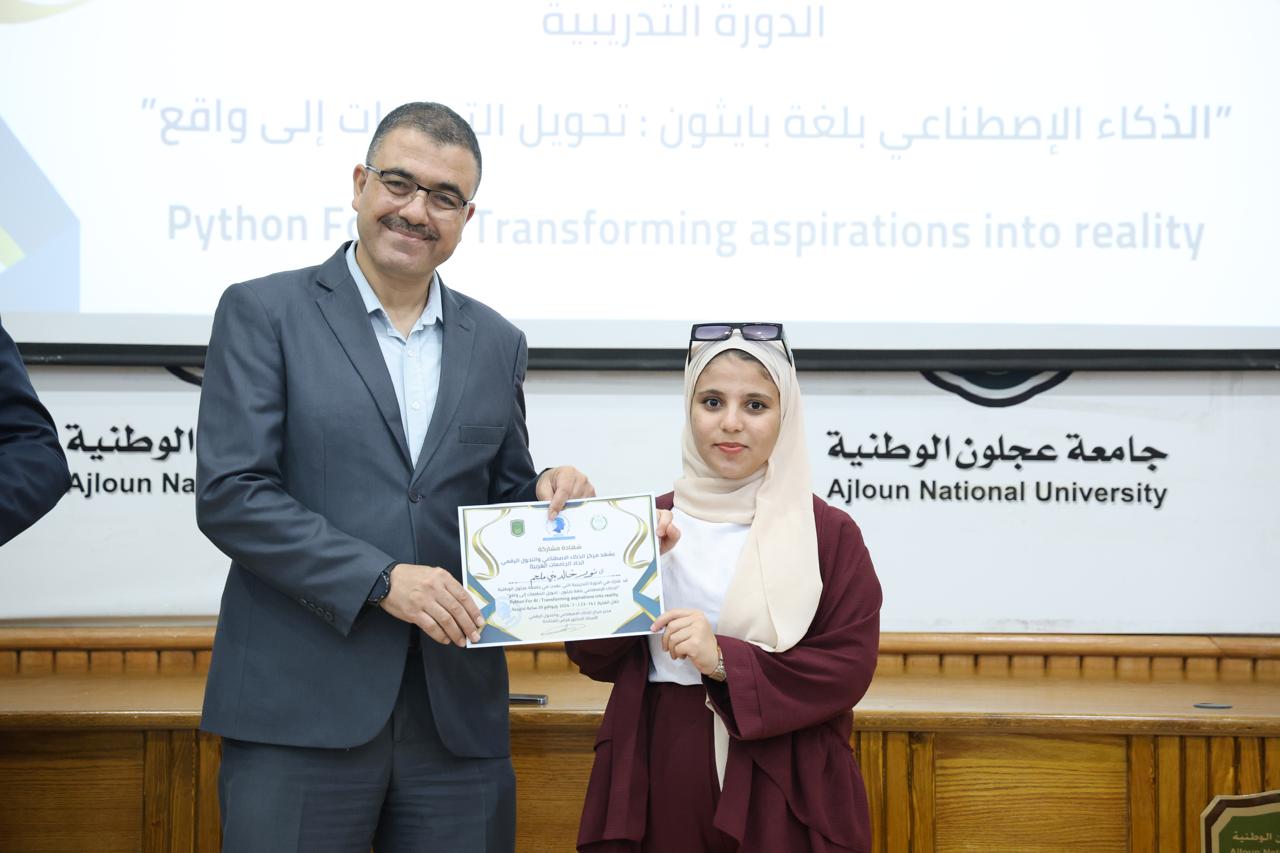اختتاماً للدورة الثانية في الذكاء الاصطناعيّ التي عقدها مركز الذكاء الاصطناعيّ والتحوّل الرقميّ في جامعة عجلون الوطنية، قدّم رئيس الجامعة الأستاذ الدكتور فراس الهنانده بحضور العمداء، الشهادات التقديرية ل63 مشترك في الدورة، وذلك بعد استكمالهم لمتطلباتها بكل نجاح وتميّز.