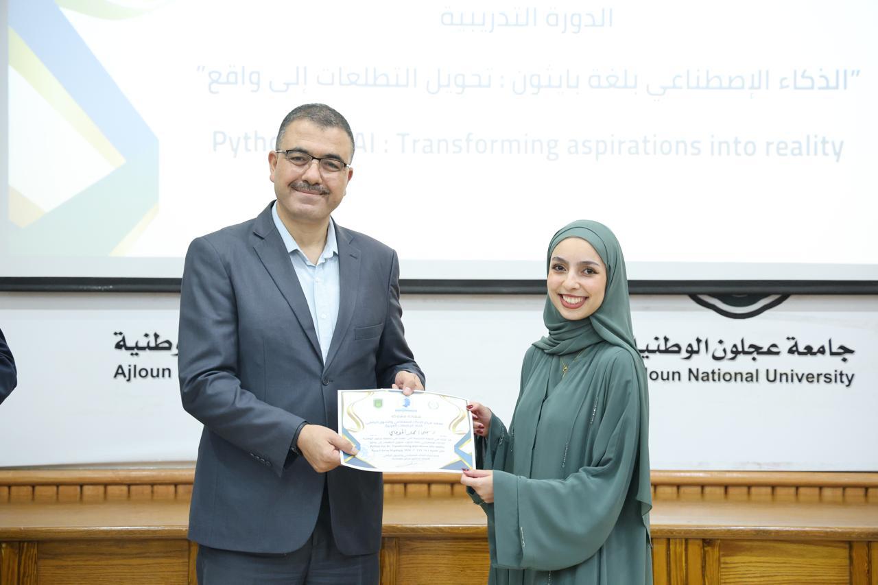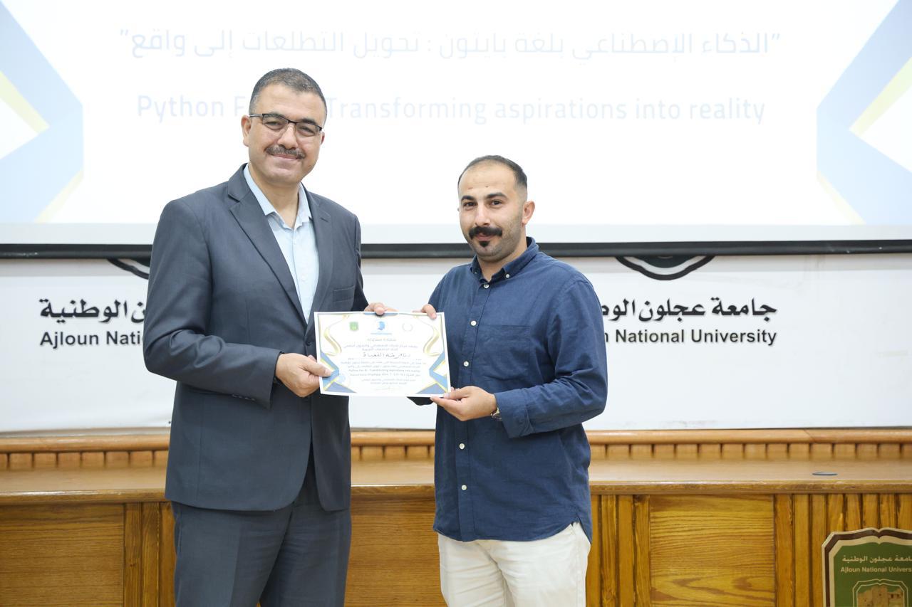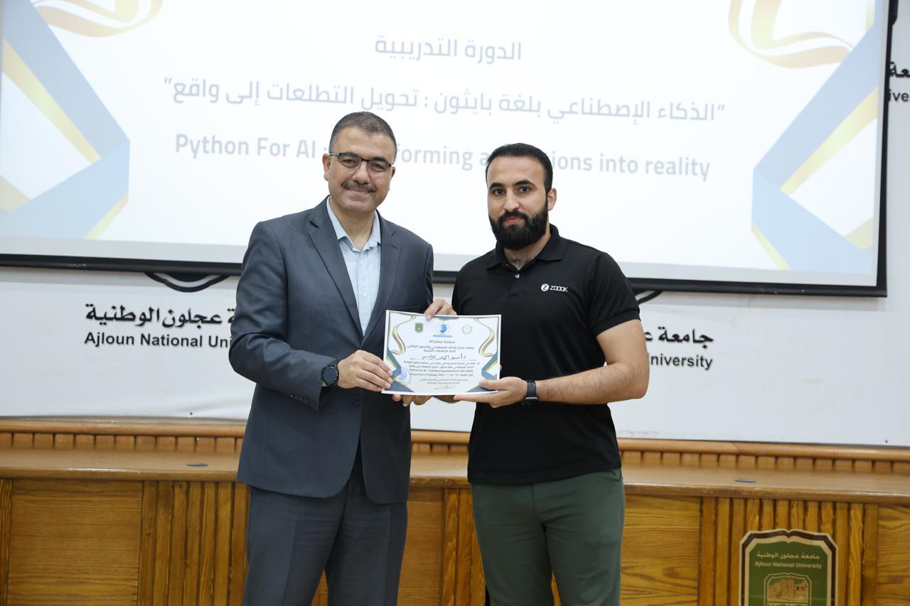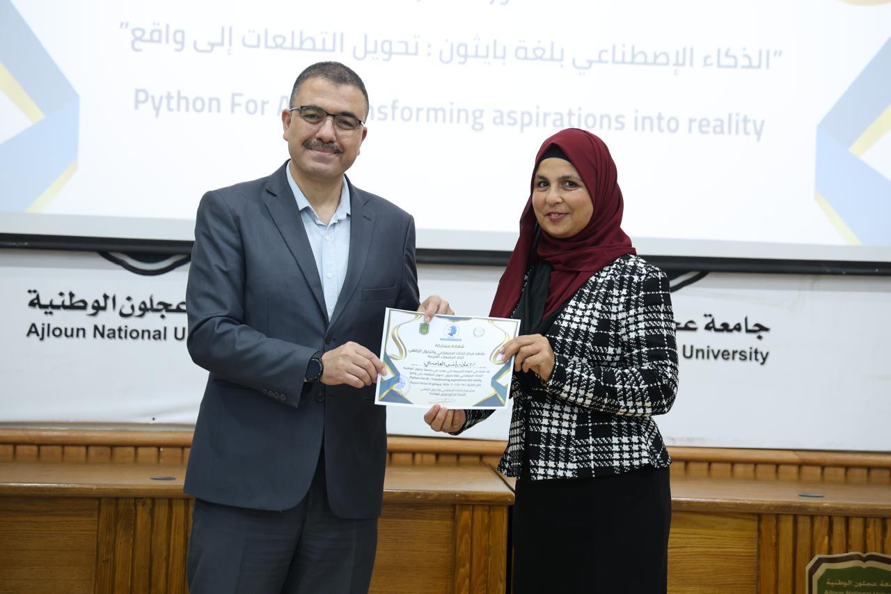 اختتاماً للدورة الثانية في الذكاء الاصطناعيّ التي عقدها مركز الذكاء الاصطناعيّ والتحوّل الرقميّ في جامعة عجلون الوطنية، قدّم رئيس الجامعة الأستاذ الدكتور فراس الهنانده بحضور العمداء، الشهادات التقديرية ل63 مشترك في الدورة، وذلك بعد استكمالهم لمتطلباتها بكل نجاح وتميّز.