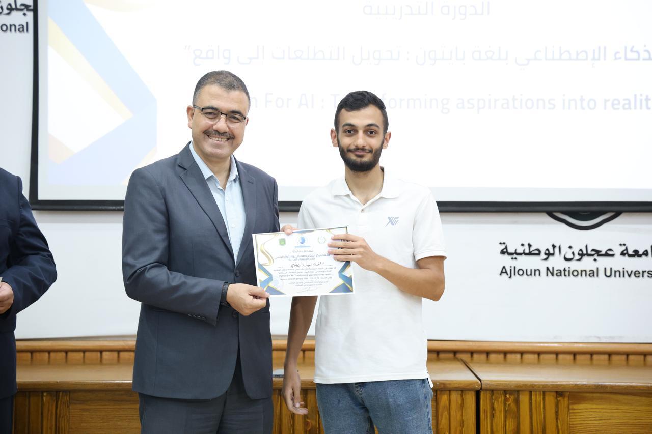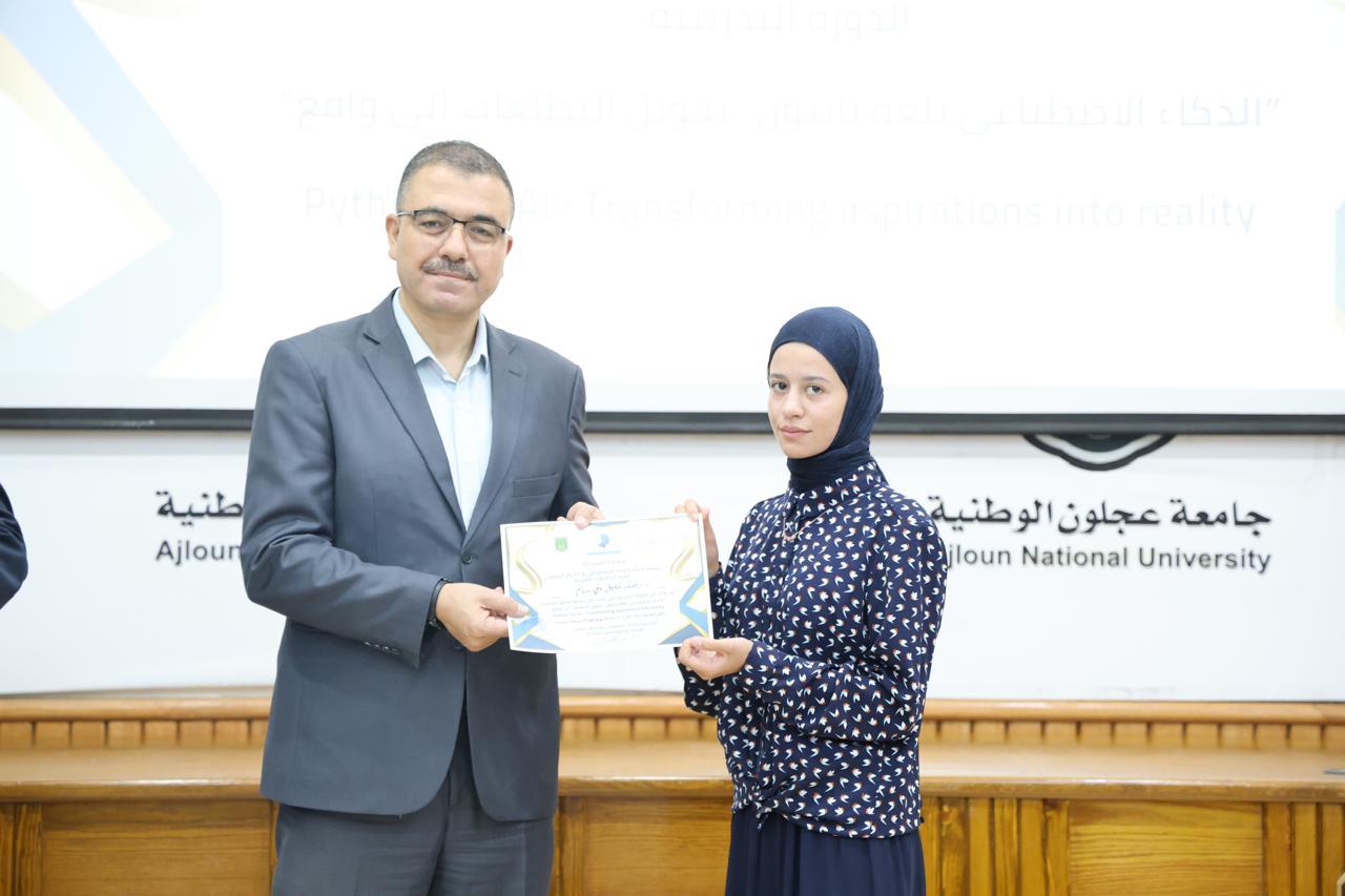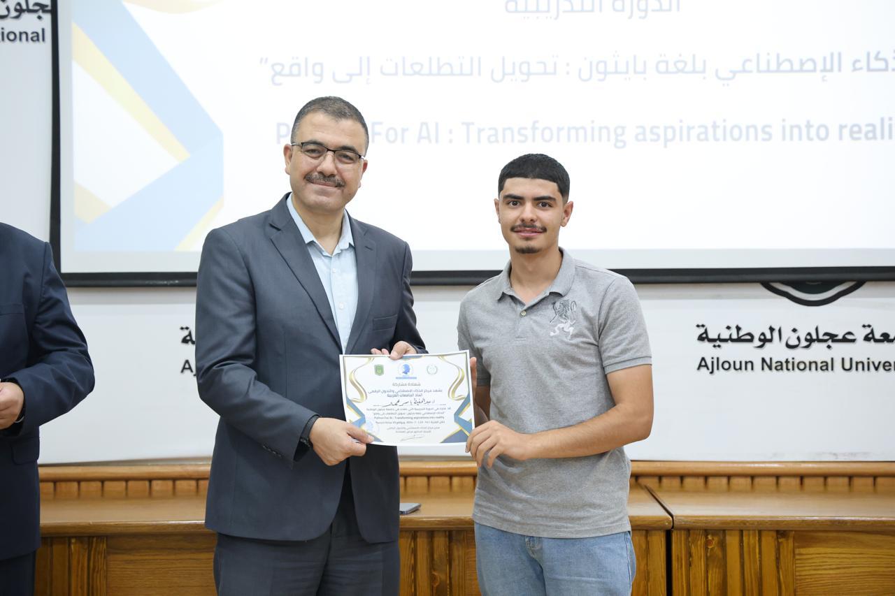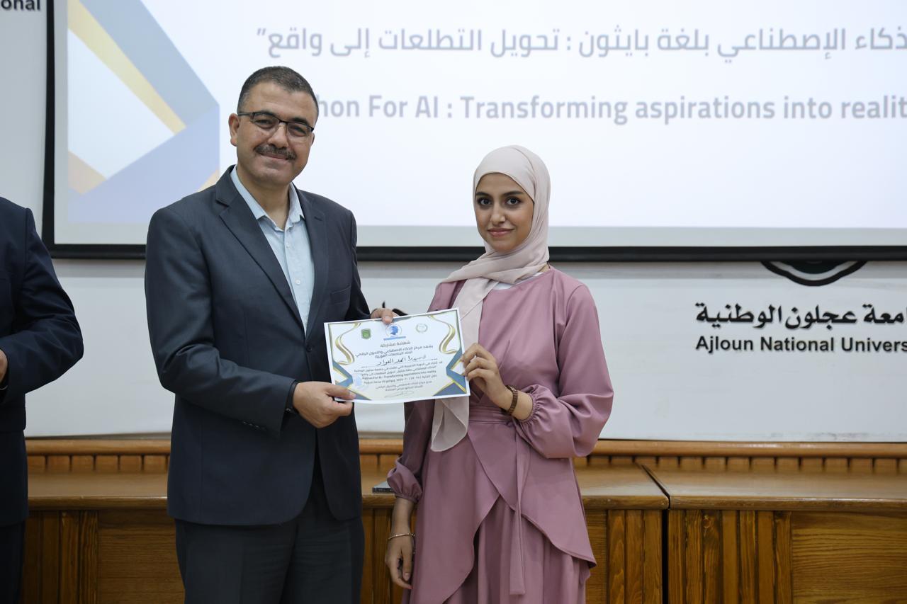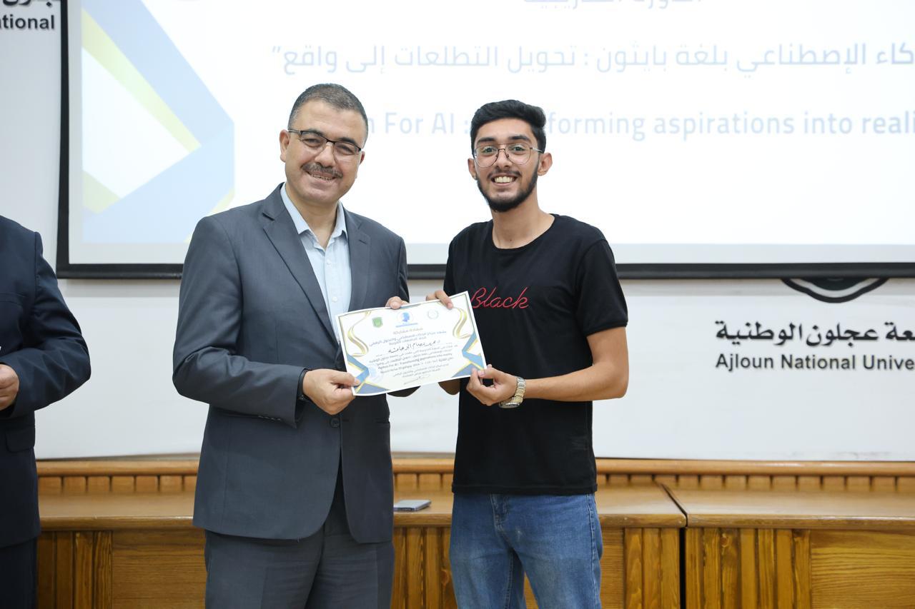 اختتاماً للدورة الثانية في الذكاء الاصطناعيّ التي عقدها مركز الذكاء الاصطناعيّ والتحوّل الرقميّ في جامعة عجلون الوطنية، قدّم رئيس الجامعة الأستاذ الدكتور فراس الهنانده بحضور العمداء، الشهادات التقديرية ل63 مشترك في الدورة، وذلك بعد استكمالهم لمتطلباتها بكل نجاح وتميّز.