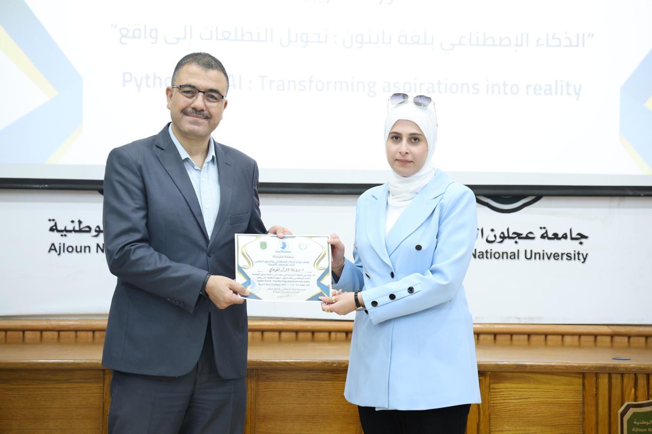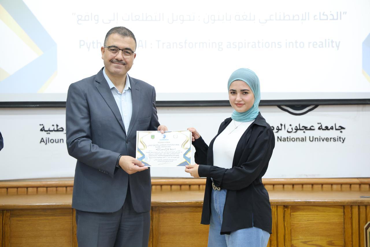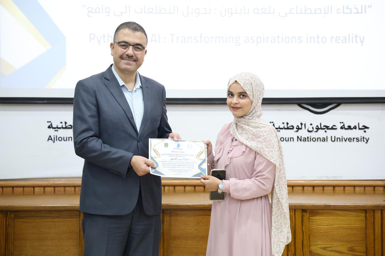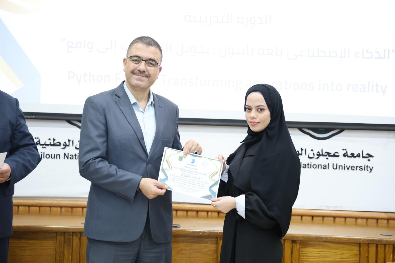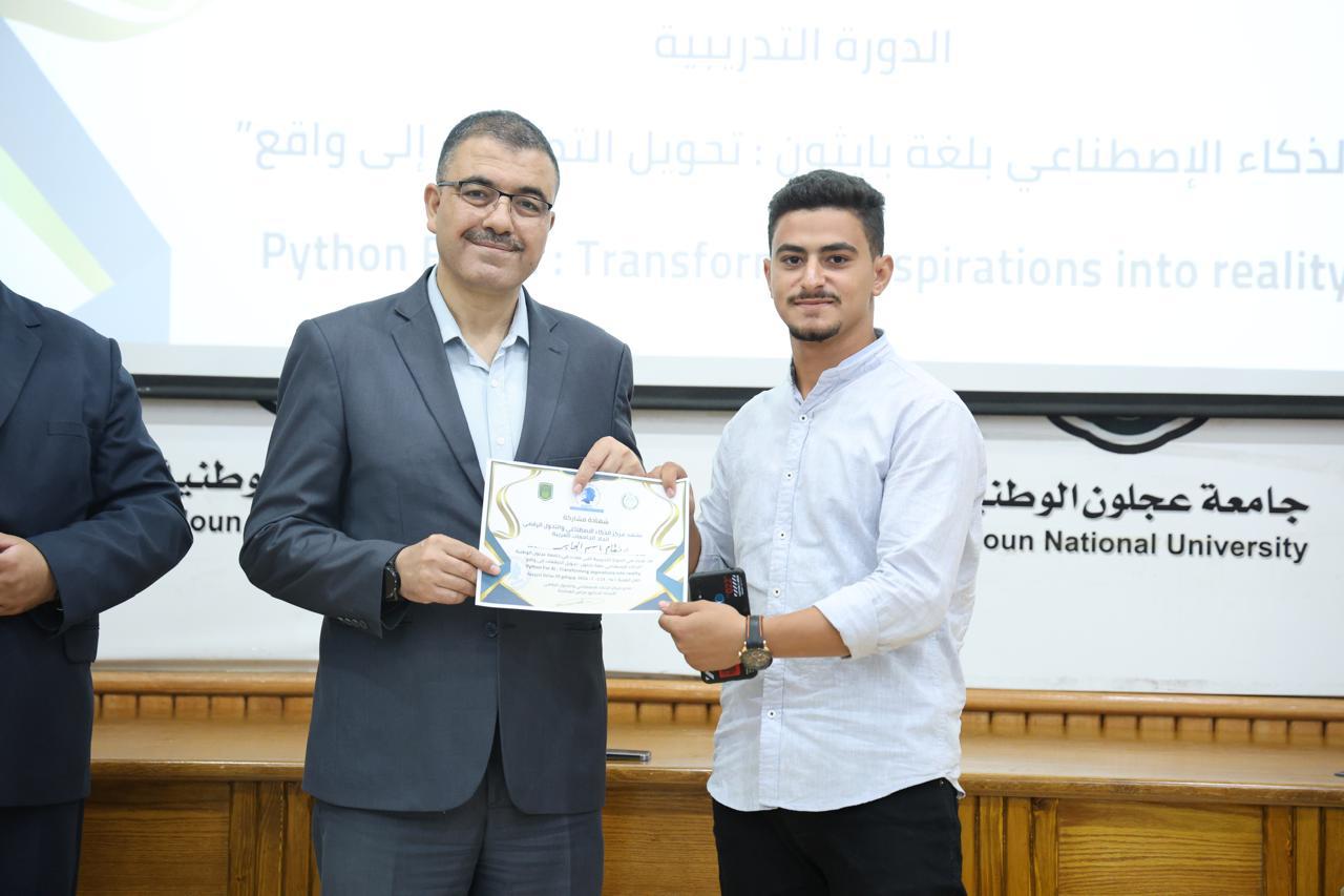 اختتاماً للدورة الثانية في الذكاء الاصطناعيّ التي عقدها مركز الذكاء الاصطناعيّ والتحوّل الرقميّ في جامعة عجلون الوطنية، قدّم رئيس الجامعة الأستاذ الدكتور فراس الهنانده بحضور العمداء، الشهادات التقديرية ل63 مشترك في الدورة، وذلك بعد استكمالهم لمتطلباتها بكل نجاح وتميّز.