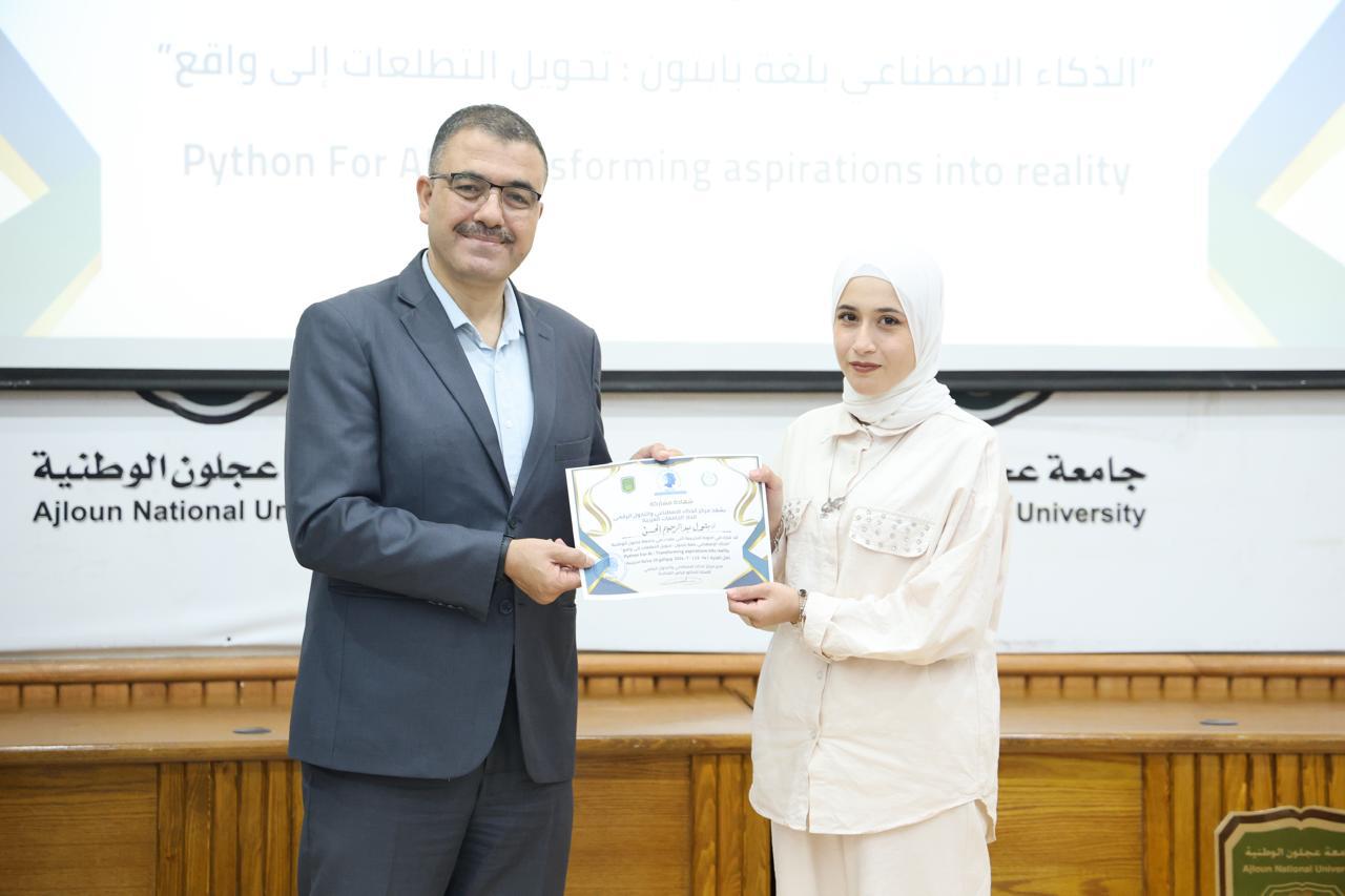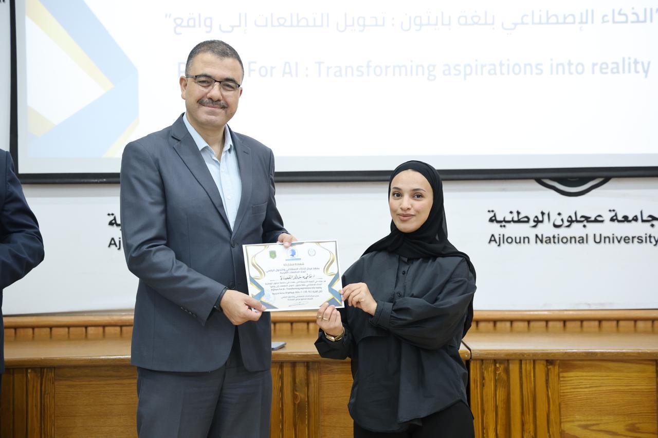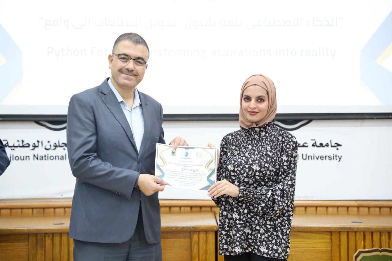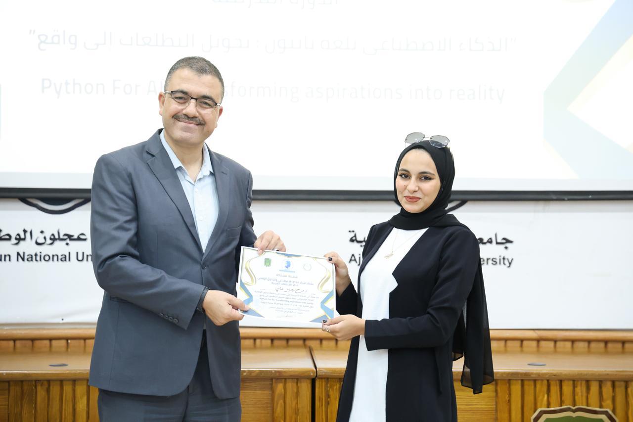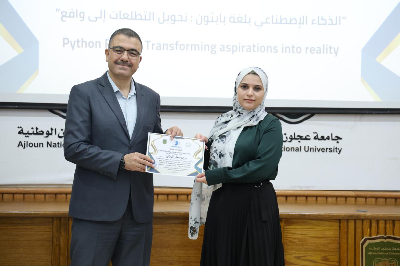 اختتاماً للدورة الثانية في الذكاء الاصطناعيّ التي عقدها مركز الذكاء الاصطناعيّ والتحوّل الرقميّ في جامعة عجلون الوطنية، قدّم رئيس الجامعة الأستاذ الدكتور فراس الهنانده بحضور العمداء، الشهادات التقديرية ل63 مشترك في الدورة، وذلك بعد استكمالهم لمتطلباتها بكل نجاح وتميّز.