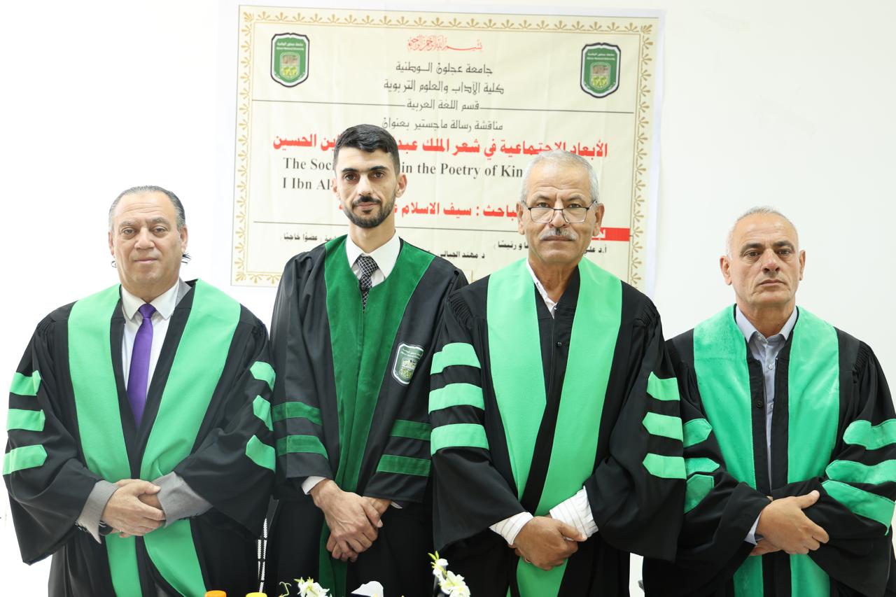 كما نوقشت في كلية الاداب قسم اللغة العربية رسالتي ماجستير بعنوان الاولى “ الأبعاد الاجتماعية في شعر الملك عبدالله ابن الحسين”، للطالب سيف الاسلام ربابعة وبإشراف رئيسي للاستاذ الدكتور علي الخرابشة، والدكتور مهند الجبالي مناقشاً داخلياً، والدكتور أحمد الهزايمة مناقشاً خارجياً من جامعة الاسراء.