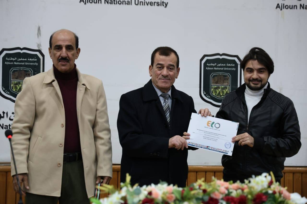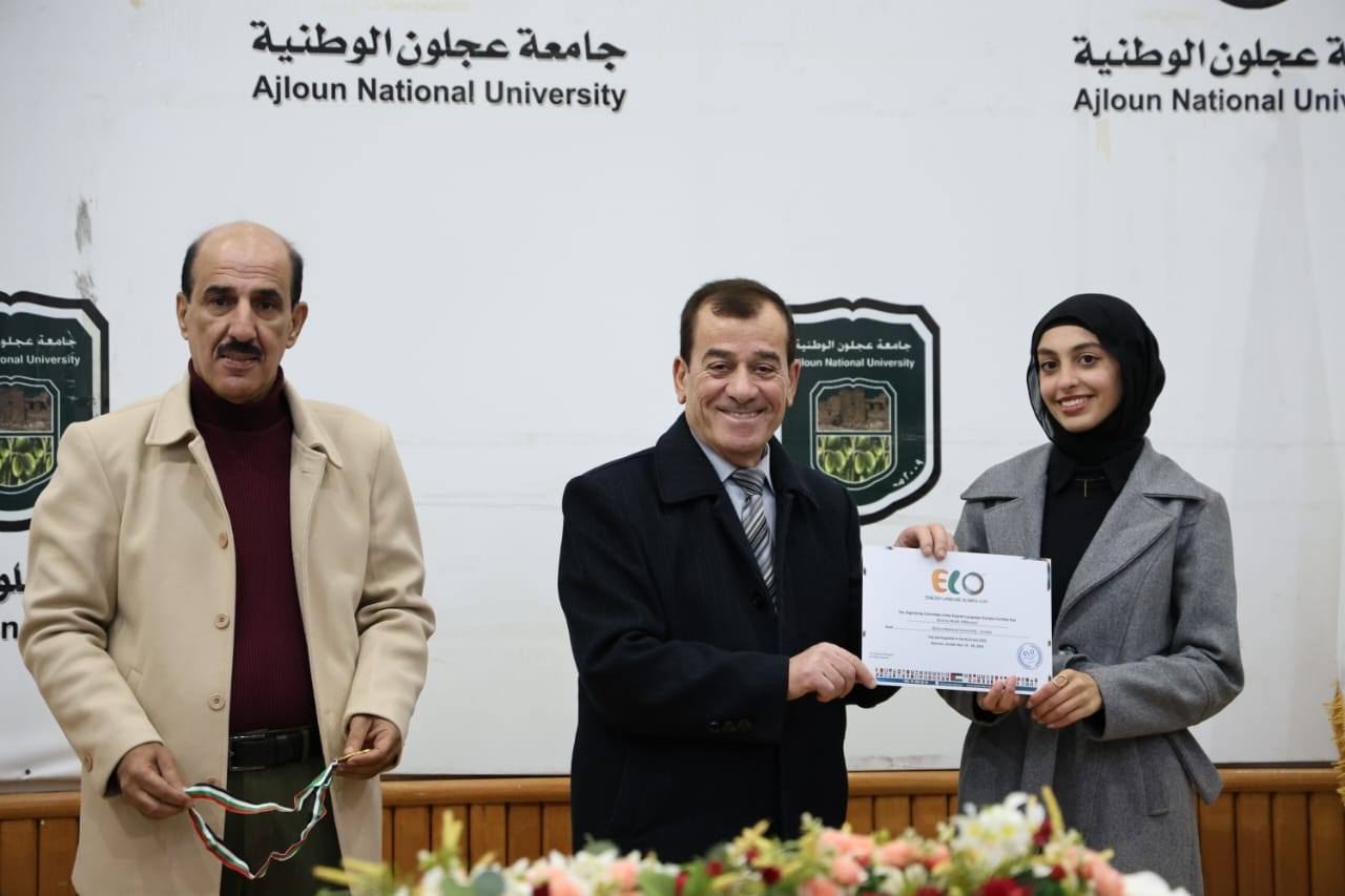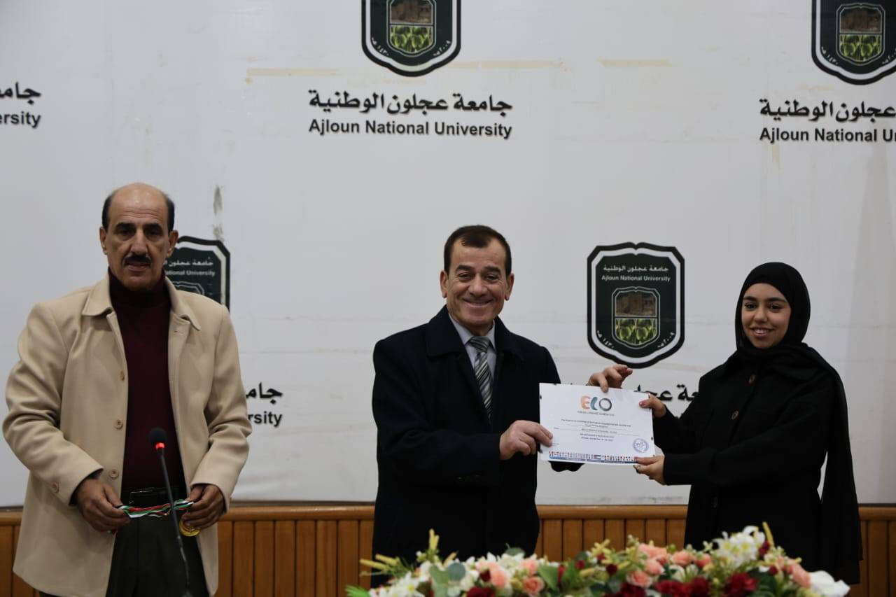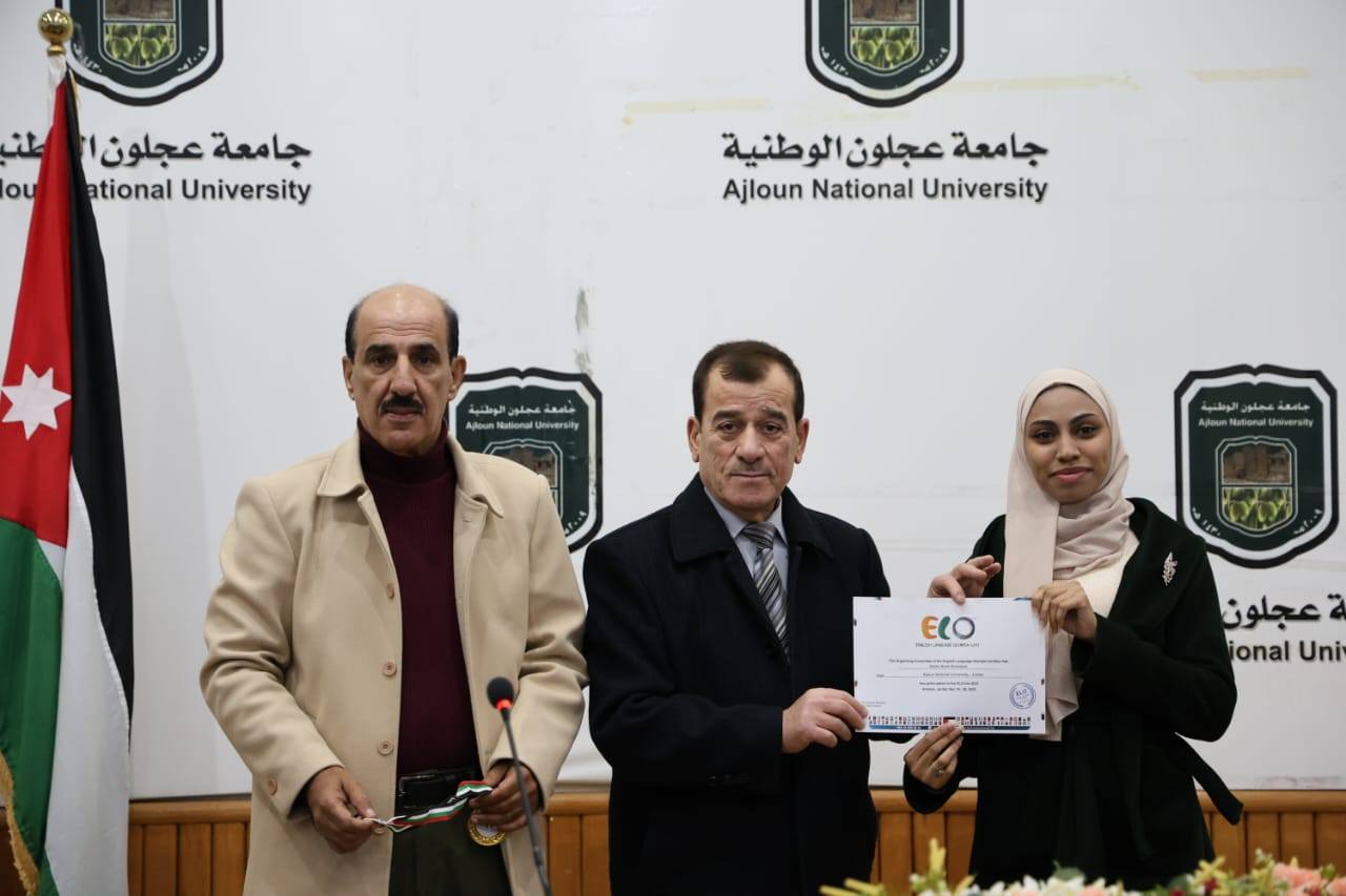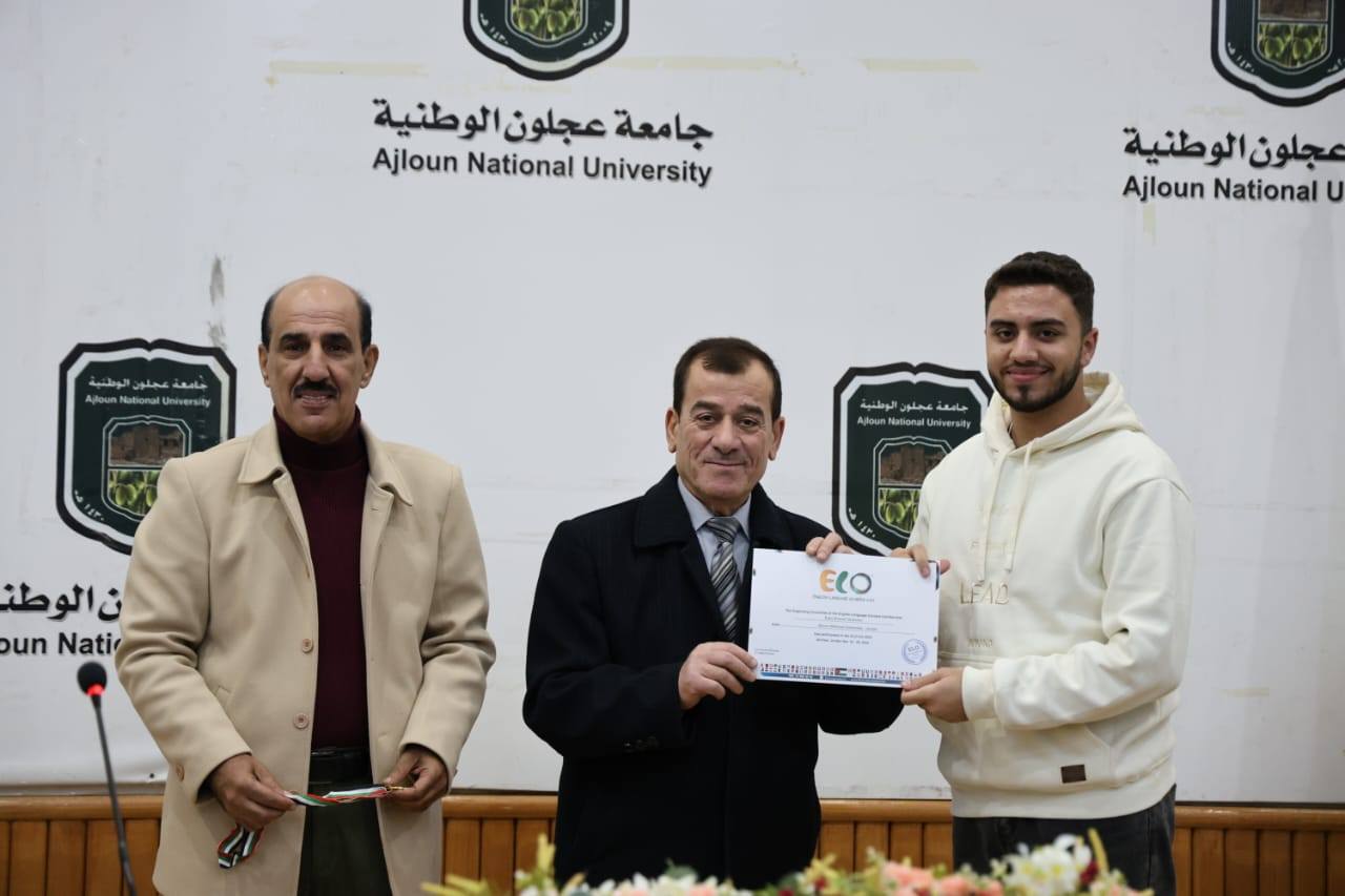 كرّم عميد كلية الآداب في جامعة عجلون الوطنية الأستاذ الدكتور محمود كناكري طلبة قسم اللغة الإنجليزية الفائزين بكأسين في أولمبياد اللغة الإنجليزية العالمي للجامعات 2025، إلى جانب أعضاء الهيئة التدريسية المشرفين عليهم، وذلك خلال لقاء رسمي في الكلية.