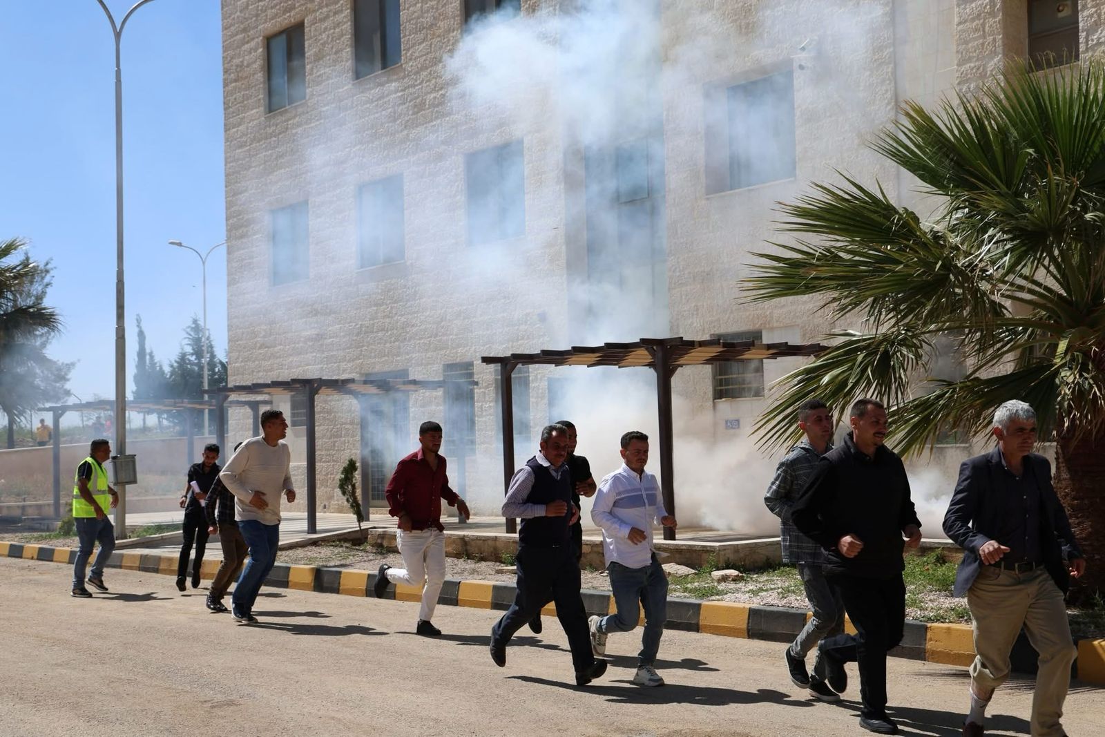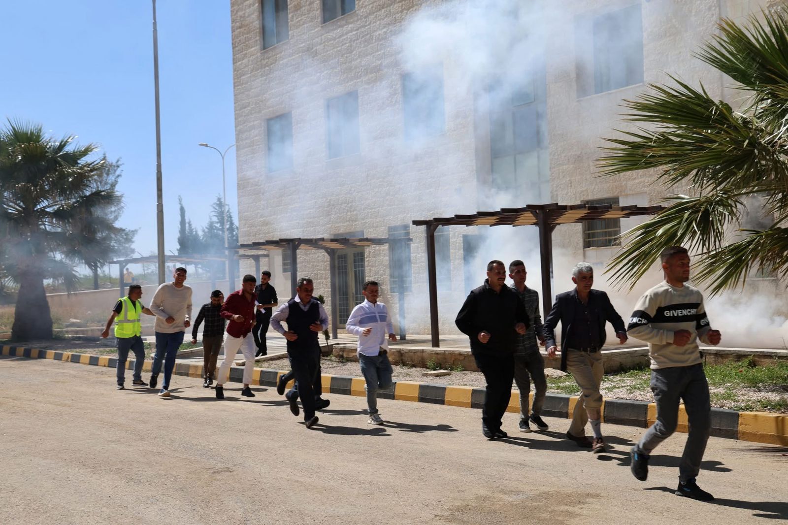 برعاية عطوفة محافظ عجلون: تمرين إخلاء شامل في جامعة عجلون الوطنية تنفذه مديرية دفاع مدني عجلون