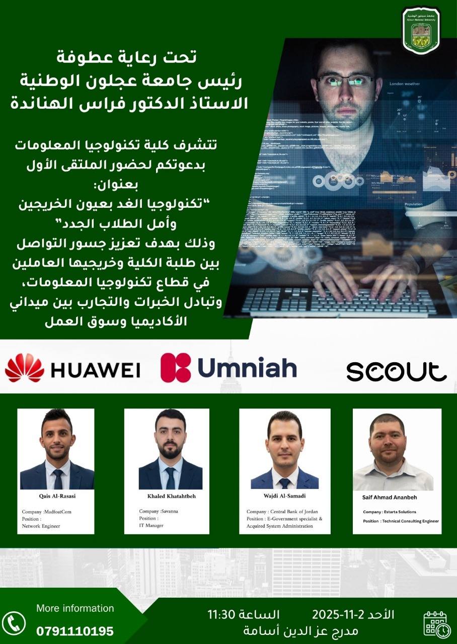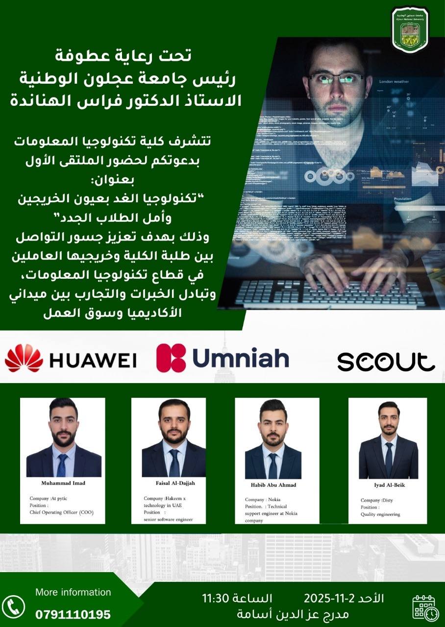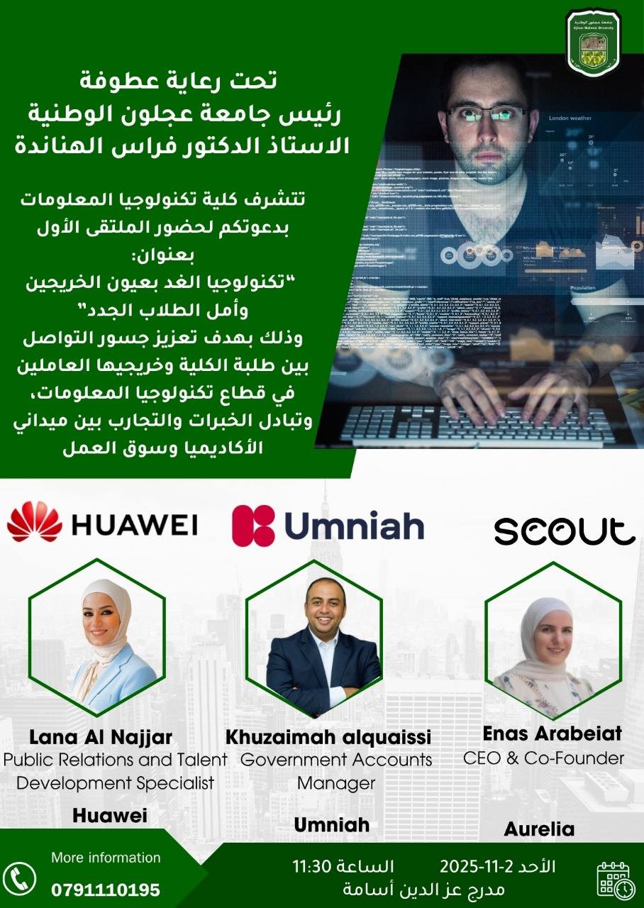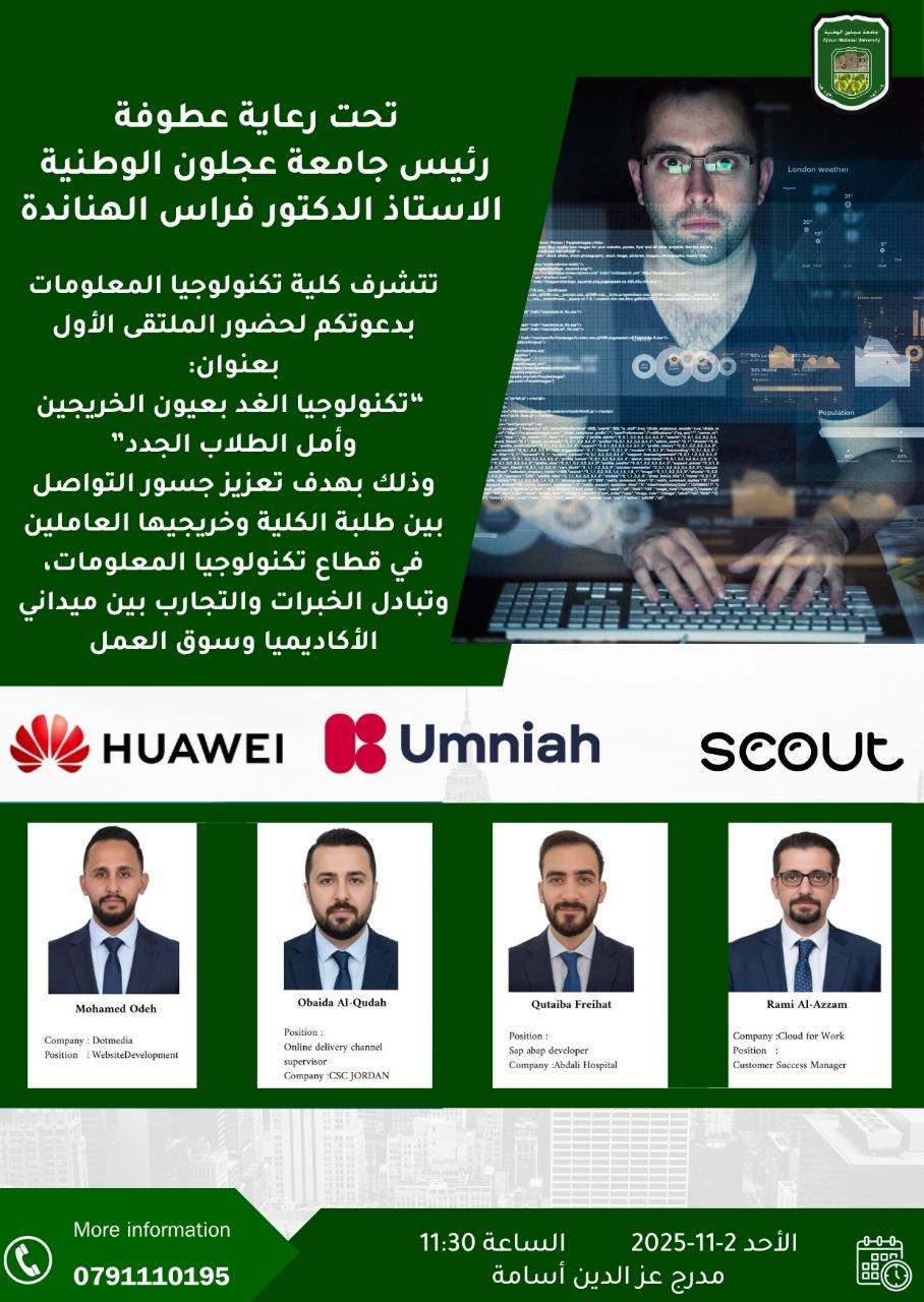 اعلان دعوة/حضور الملتقى الأول بعنوان”تكنولوجيا الغد بعيون الخريجين وأمل الطلاب الجدد”