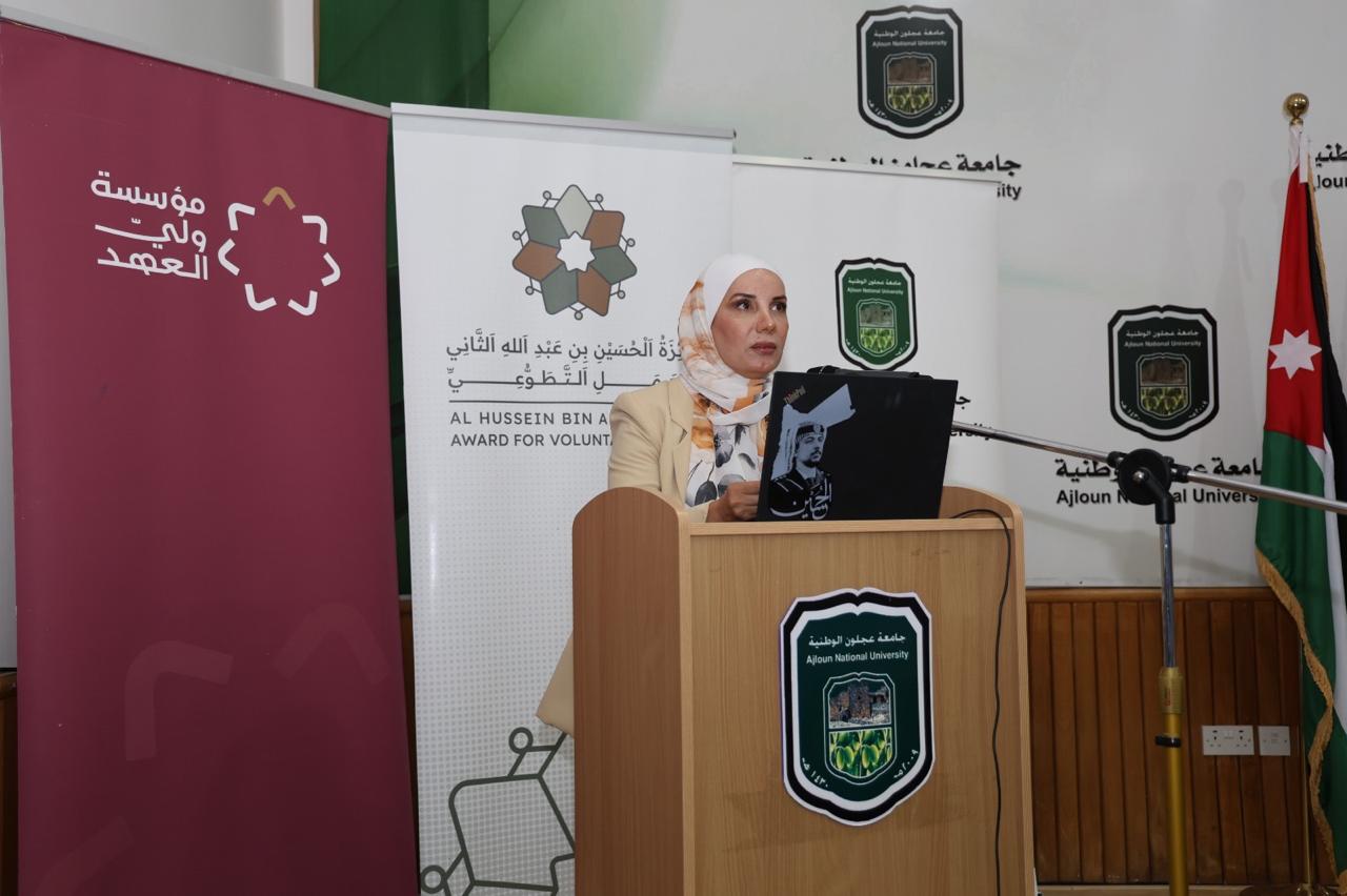 تحت رعاية رئيس جامعة عجلون الوطنية الأستاذ الدكتور فراس الهنانده، نظمت عمادة شؤون الطلبة بالتعاون مع مؤسسة ولي العهد، جلسة تعريفية بجائزة الحسين بن عبد الله للعمل التطوعي، بحضور منسقة مكتب مؤسسة ولي العهد في عجلون وعد الصمادي، ومدير مركز شباب عنجرة طلال خطاطبة، وعدد من عمداء الكليات والطلبة.