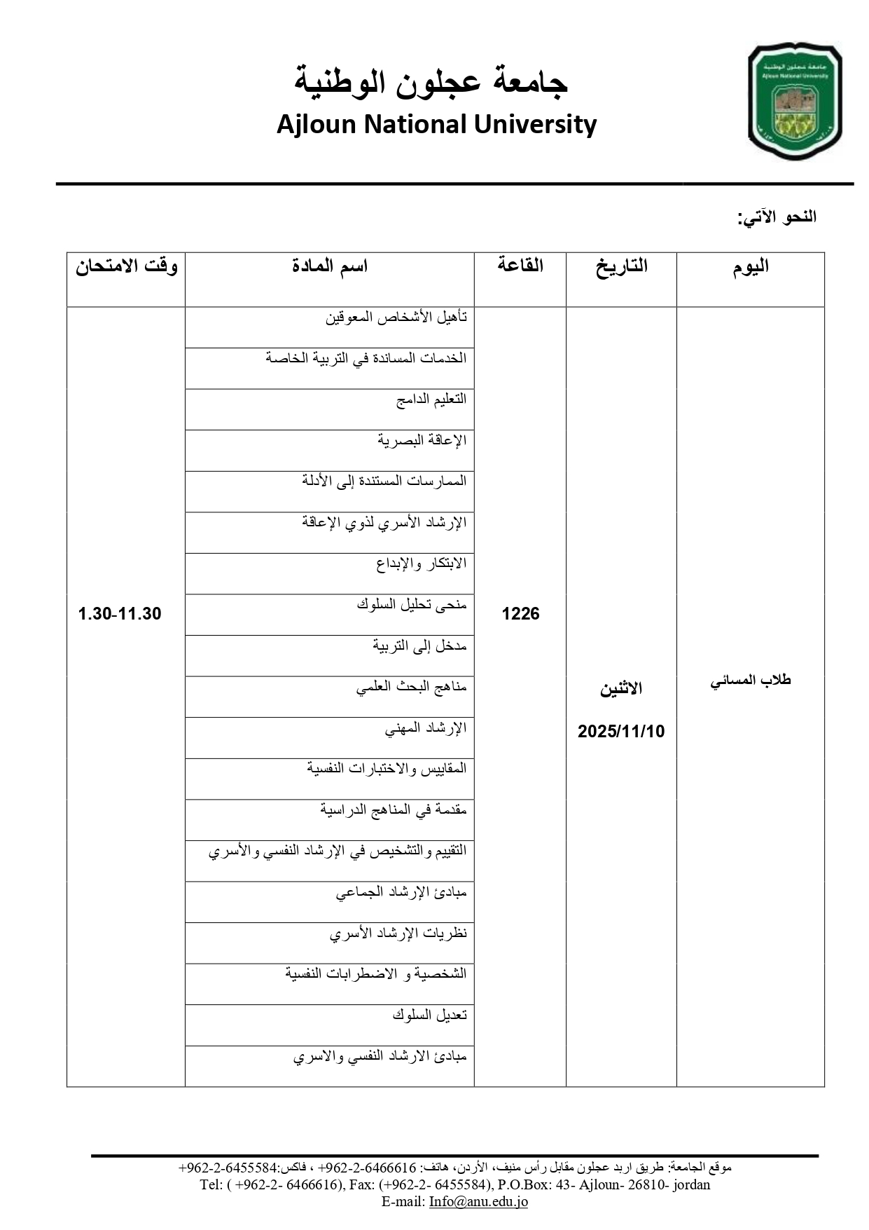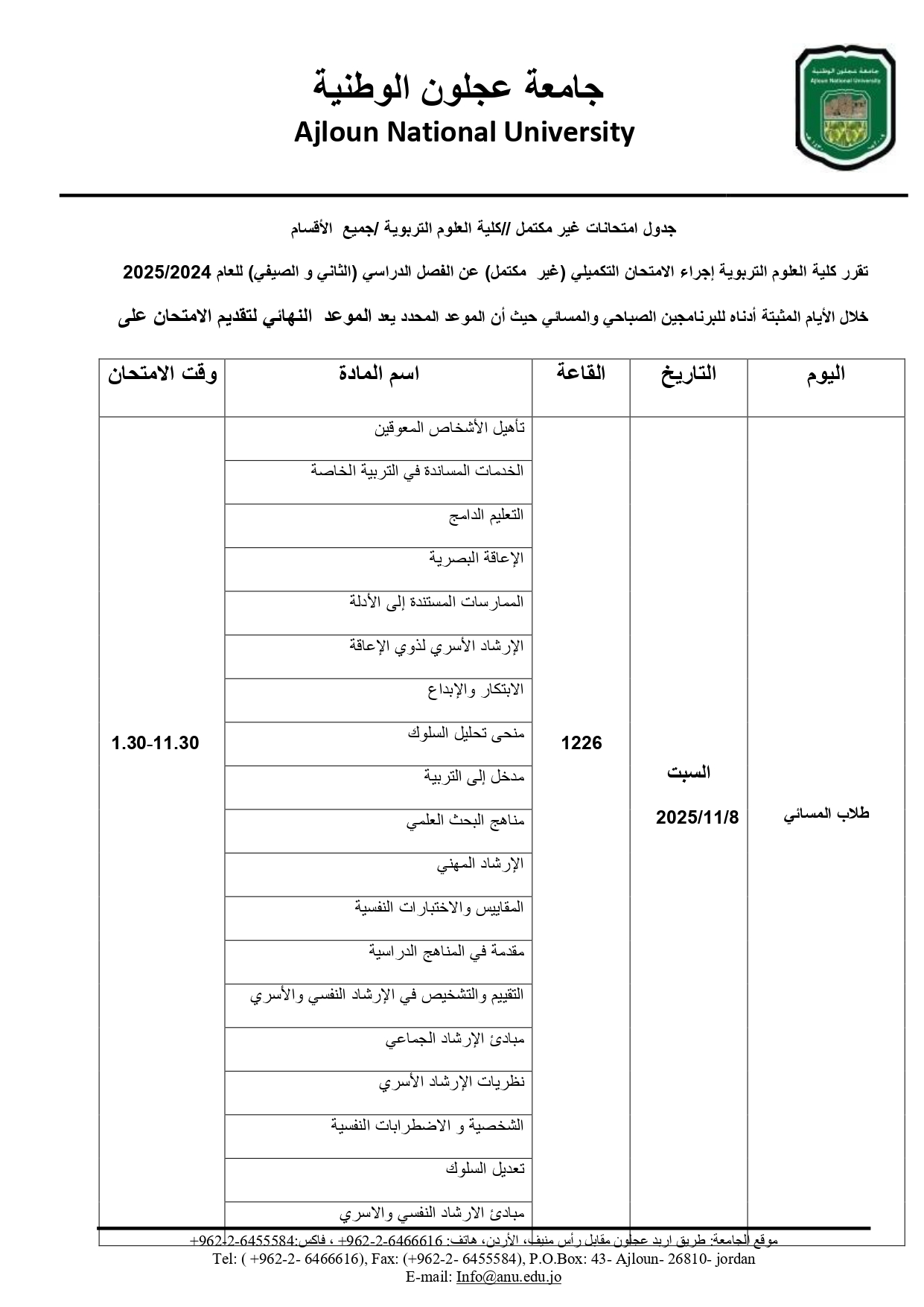 جدول امتحانات غير مكتمل /كلية العلوم التربوية /جميع الأقسام