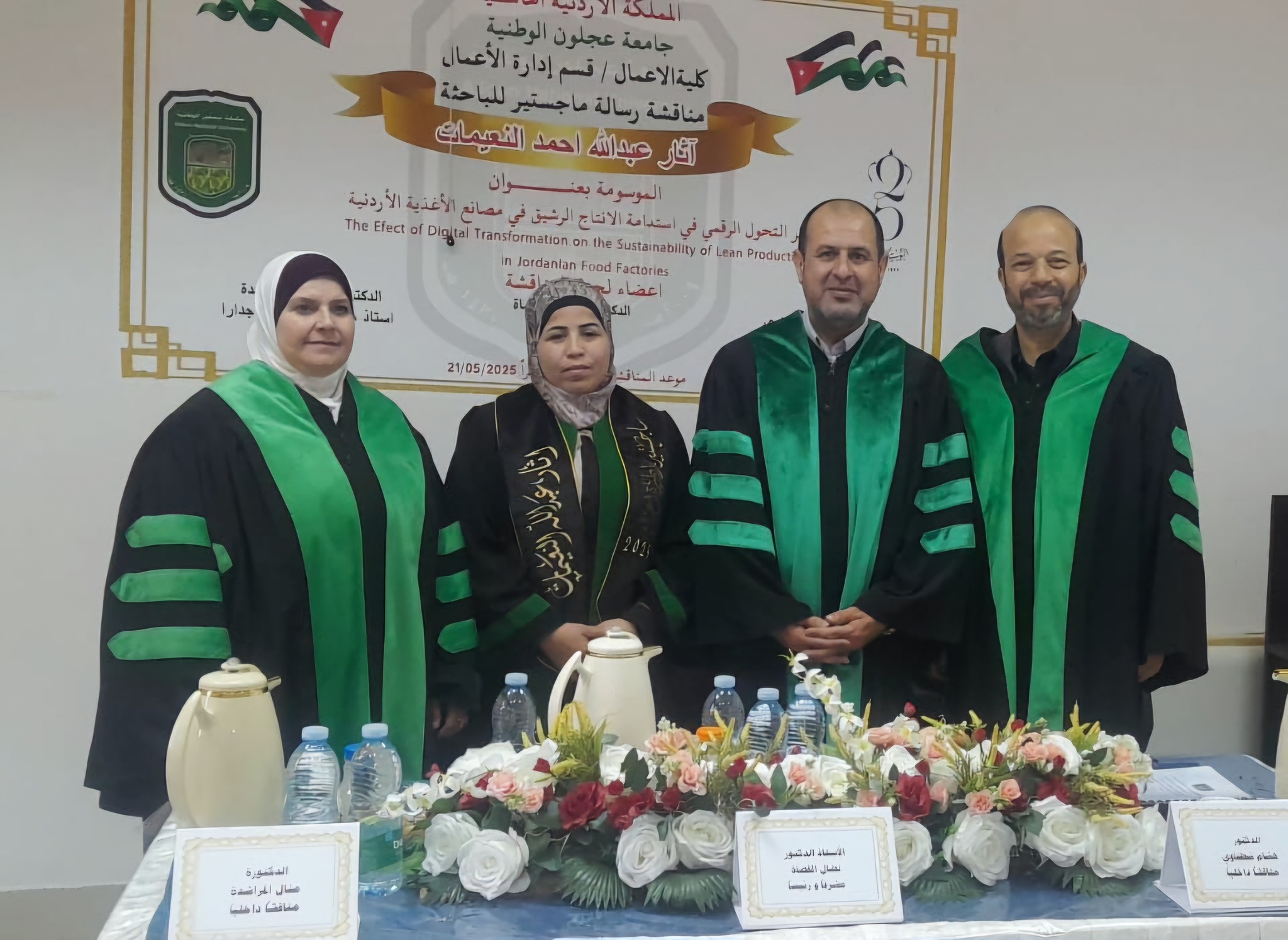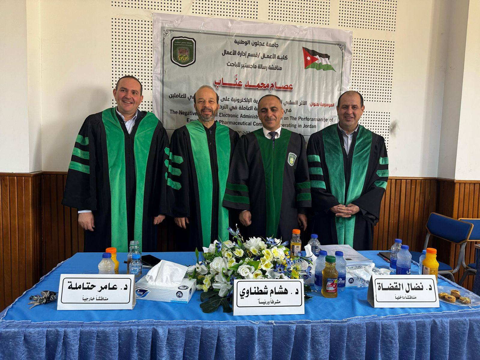 شهدت كلية الأعمال في جامعة عجلون الوطنية خلال الايام الماضية، مناقشة عدد من رسائل الماجستير في تخصصات متنوعة، قدّم خلالها الطلبة دراسات نوعية تناولت قضايا معاصرة في بيئة الأعمال، وسلطت الضوء على موضوعات تتقاطع مع التحول الرقمي والسلامة المهنية والرقابة الإدارية وسلوك العاملين في القطاعات الإنتاجية والخدمية.