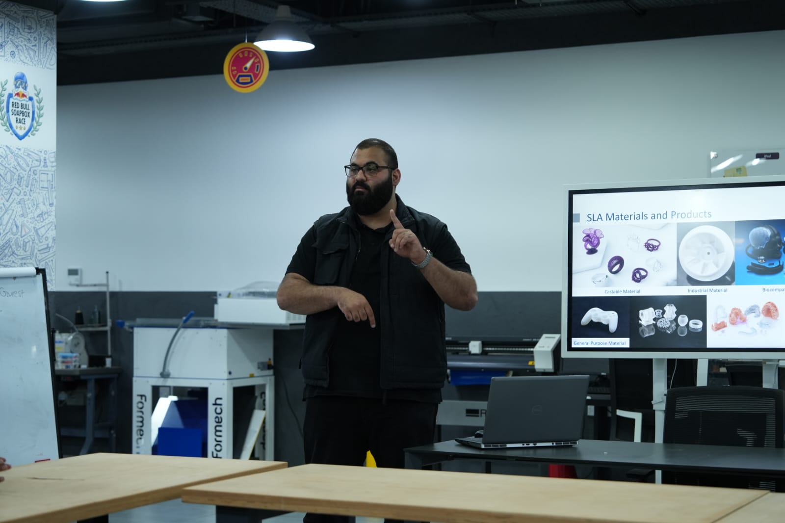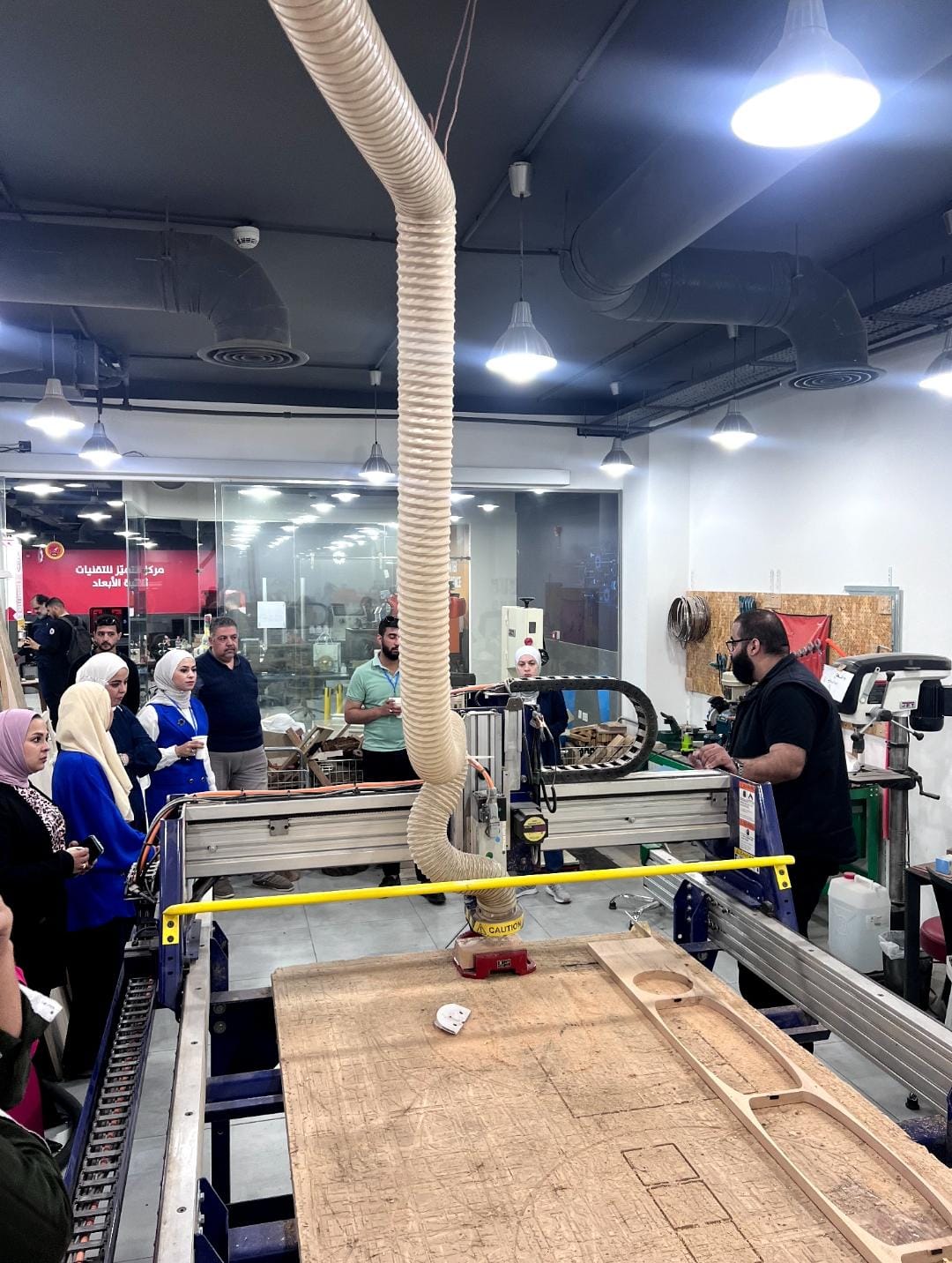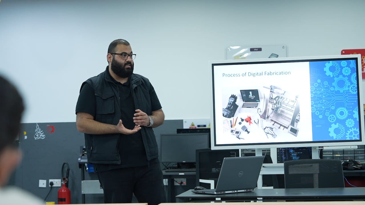 وتهدف الورشة إلى تعريف الطلبة بأحدث تقنيات التصنيع الرقمي كالطباعة ثلاثية الأبعاد والقطع بالليزر وCLC، وكيفية استخدام المجسمات والنماذج في المشاريع الهندسية.
