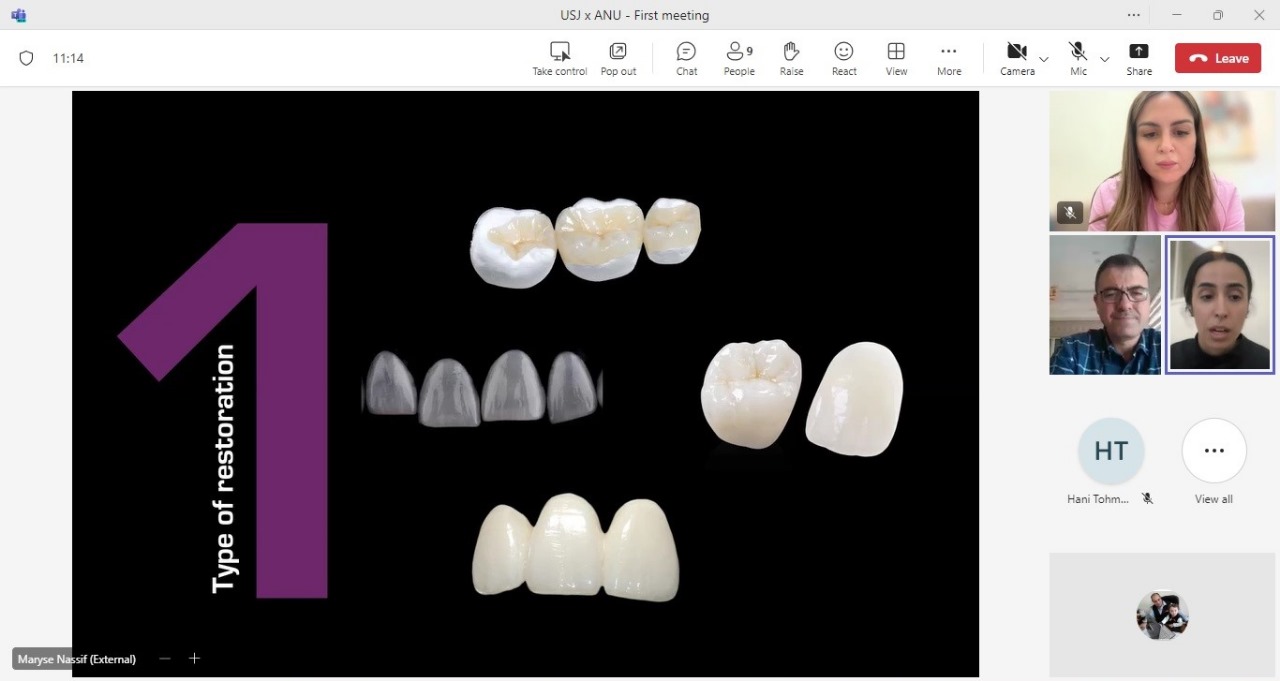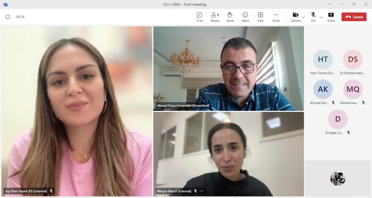 جانب من اجتماع رئيس جامعة عجلون الوطنية – رئيس مركز الذكاء الاصطناعي والتحوّل الرقمي الأستاذ الدكتور فراس الهنانده برفقة فريق المركز مع مجموعة من المتخصصين وأعضاء الهيئة التدريسية في كلية الطب – قسم طب الأسنان في جامعة القديس يوسف (الجامعة اليسوعية) في لبنان، للاتفاق على تنفيذ مشروع بحثي يقوم على تطبيق تقنية الذكاء الاصطناعي (AI) في تصنيع وصيانة الأسنان.
