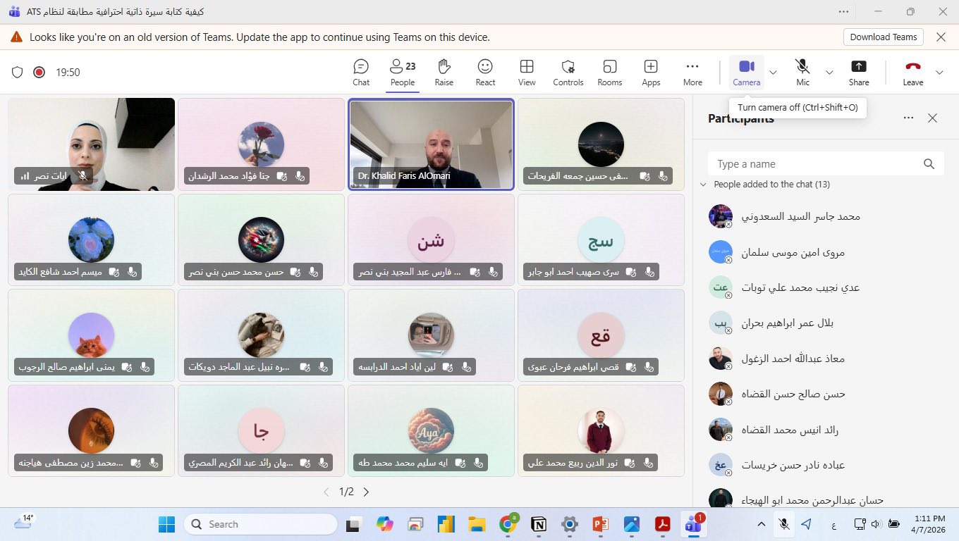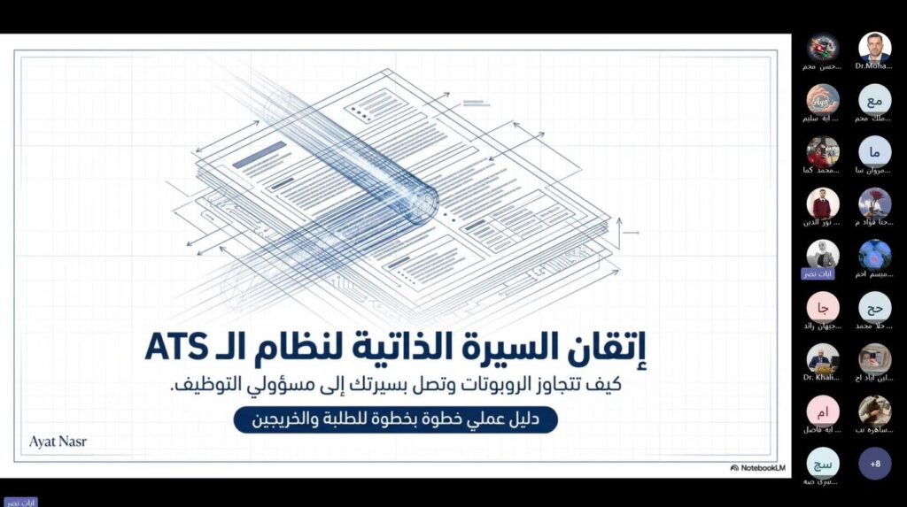 ويأتي تنظيم هذه الورشة في إطار حرص جامعة عجلون الوطنية على تعزيز مهارات طلبتها وتوسيع خبراتهم العملية من خلال البرامج التدريبية النوعية التي تنفذها بالتعاون بين مراكزها الأكاديمية والإدارية وكلياتها المختلفة، بما يسهم في إعدادهم لسوق العمل بكفاءة وتميز. كما أتاح مركز الاستشارات وخدمة المجتمع شهادات المشاركة إلكترونيًا عبر الرابط المخصص أدناه https://drive.google.com/…/1EzRYYMNOI1OWgpOYflxyEC4Zv14…